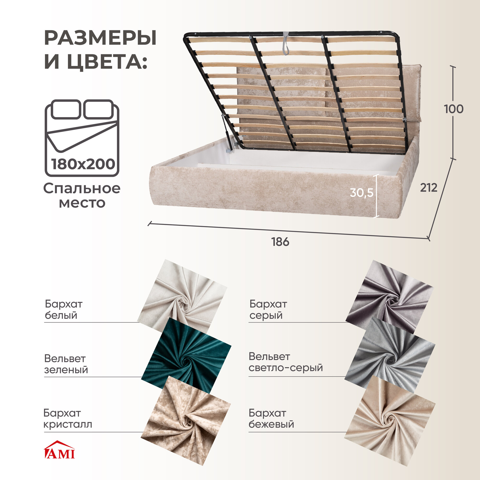 СохранитьДвуспальная кровать 180х200 с подъемным механизмом Британия для дома и спальни, бархат серо-бежевый, Ами Мебель интересное: