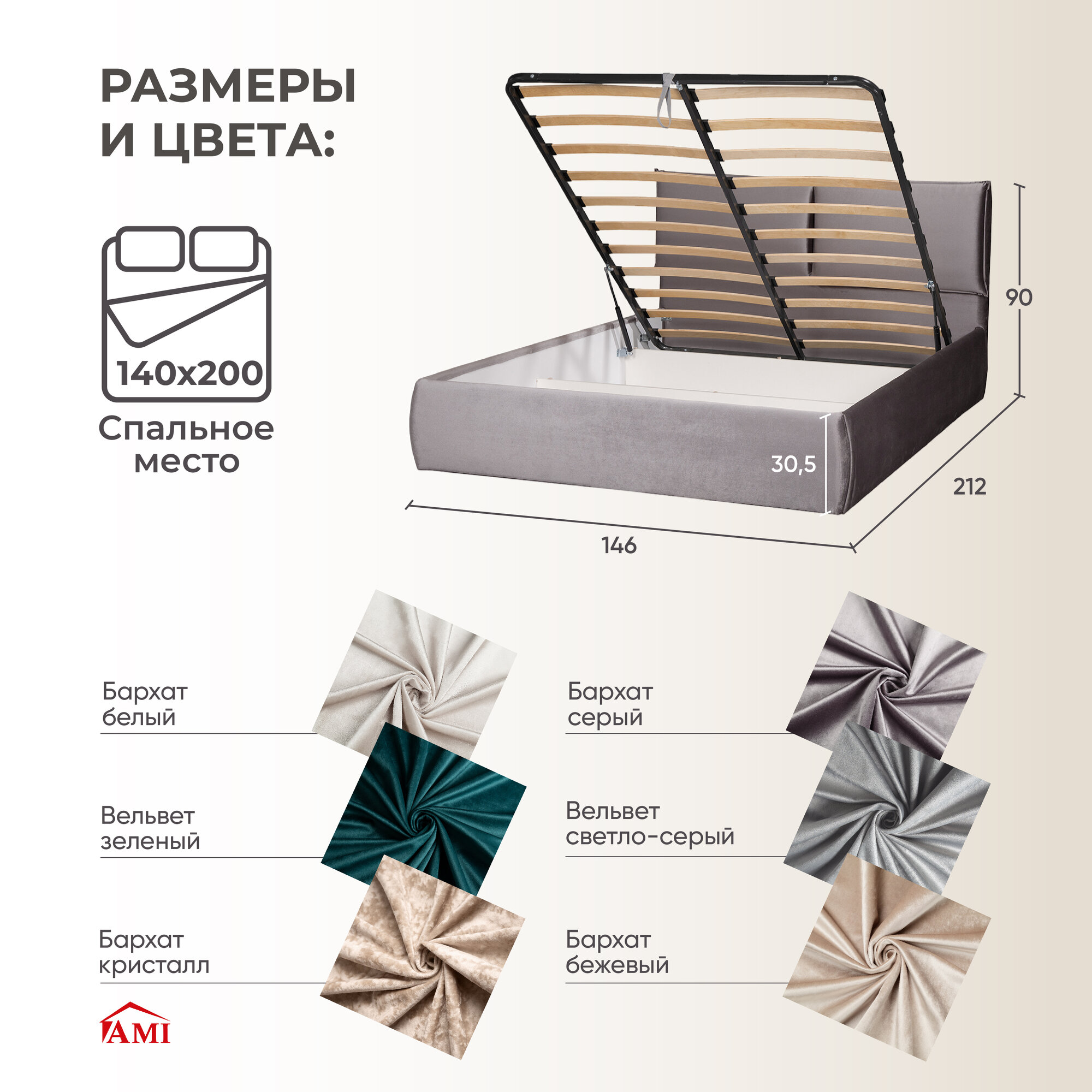 СохранитьДвуспальная кровать 140х200 с подъемным механизмом Британия для дома и спальни, бархат серый, Ами Мебель интересное: