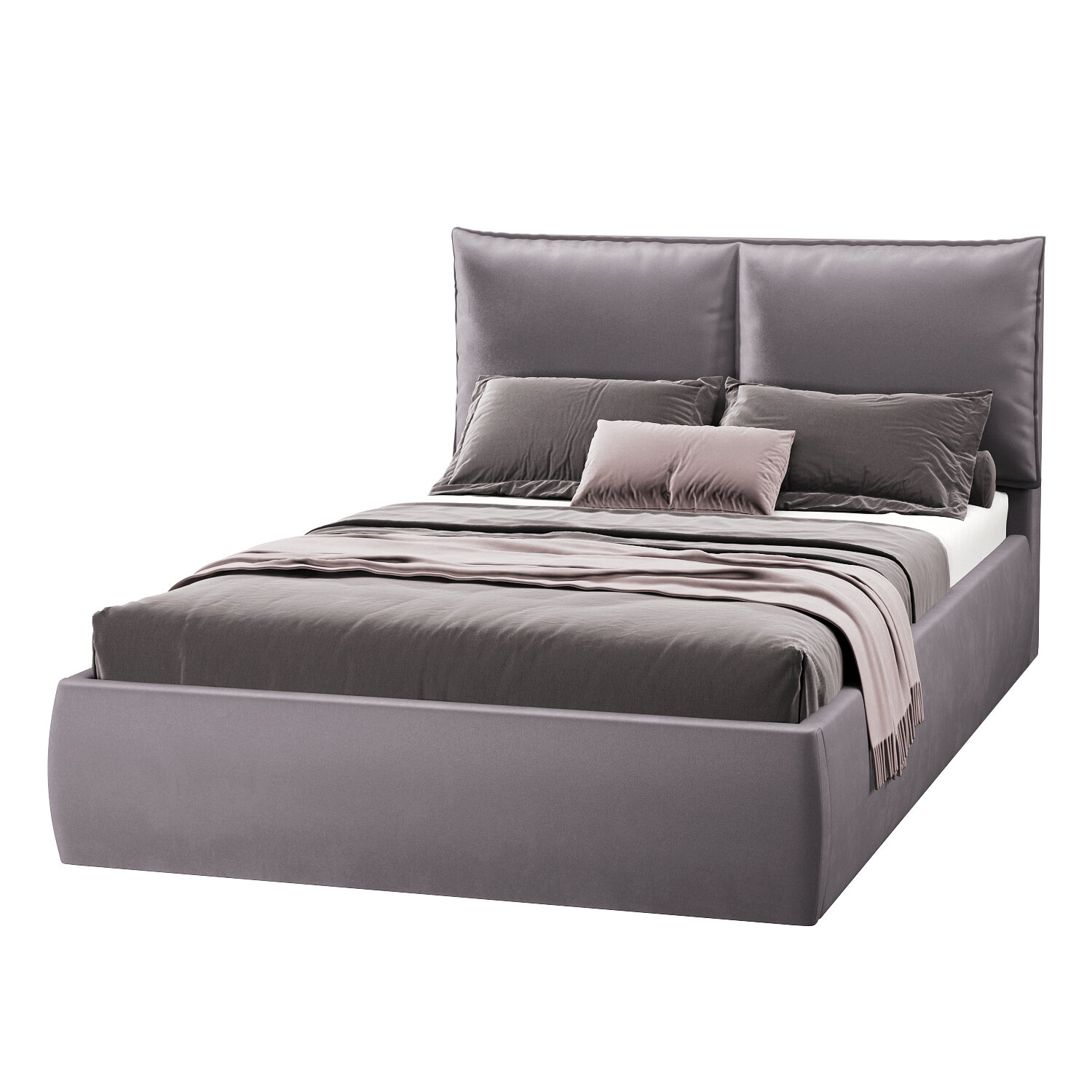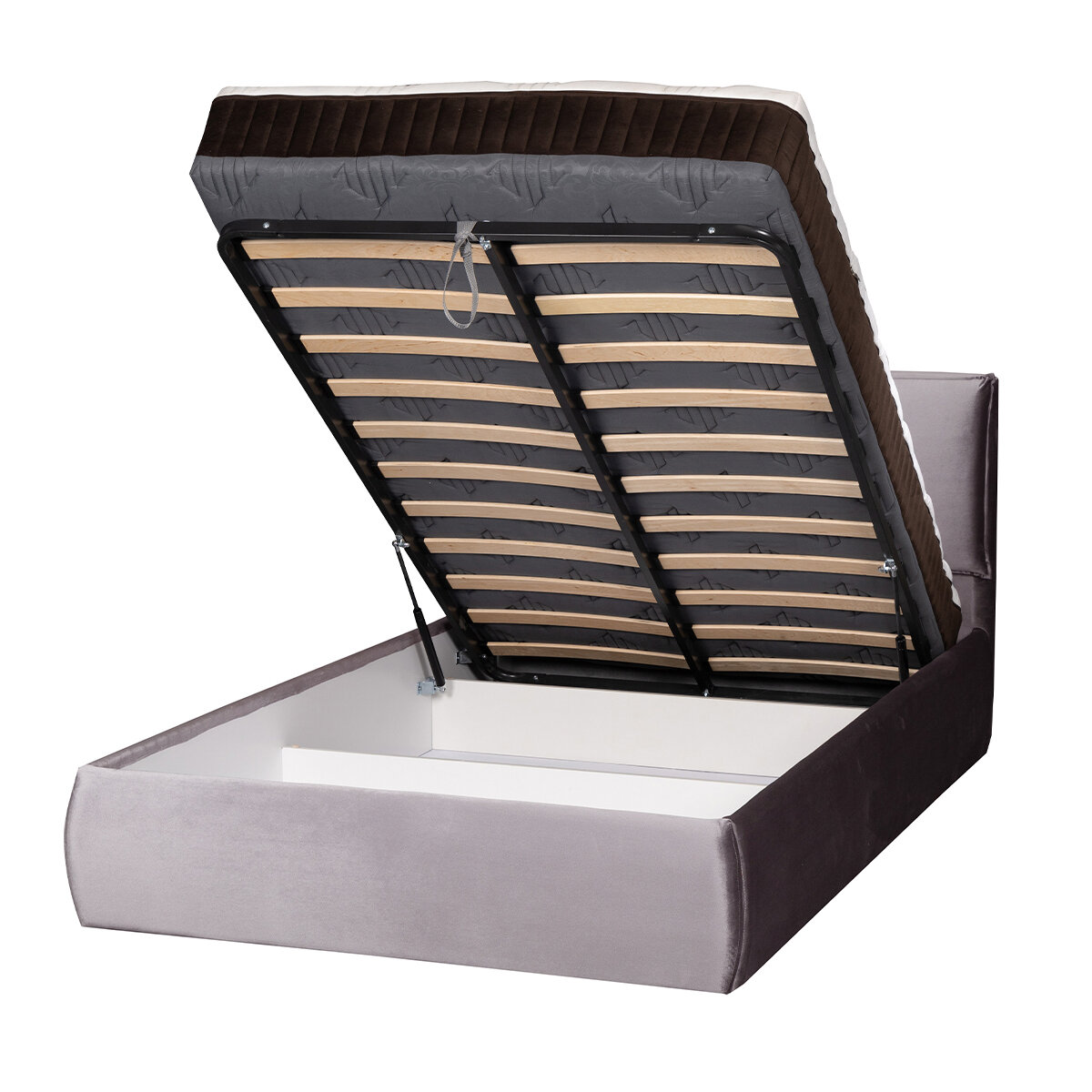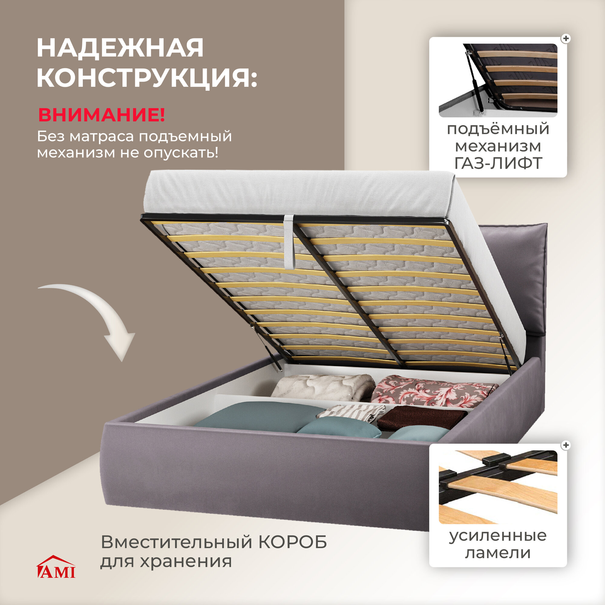 Двуспальная кровать 140х200 с подъемным механизмом Британия для дома и спальни, бархат серый, Ами Мебель