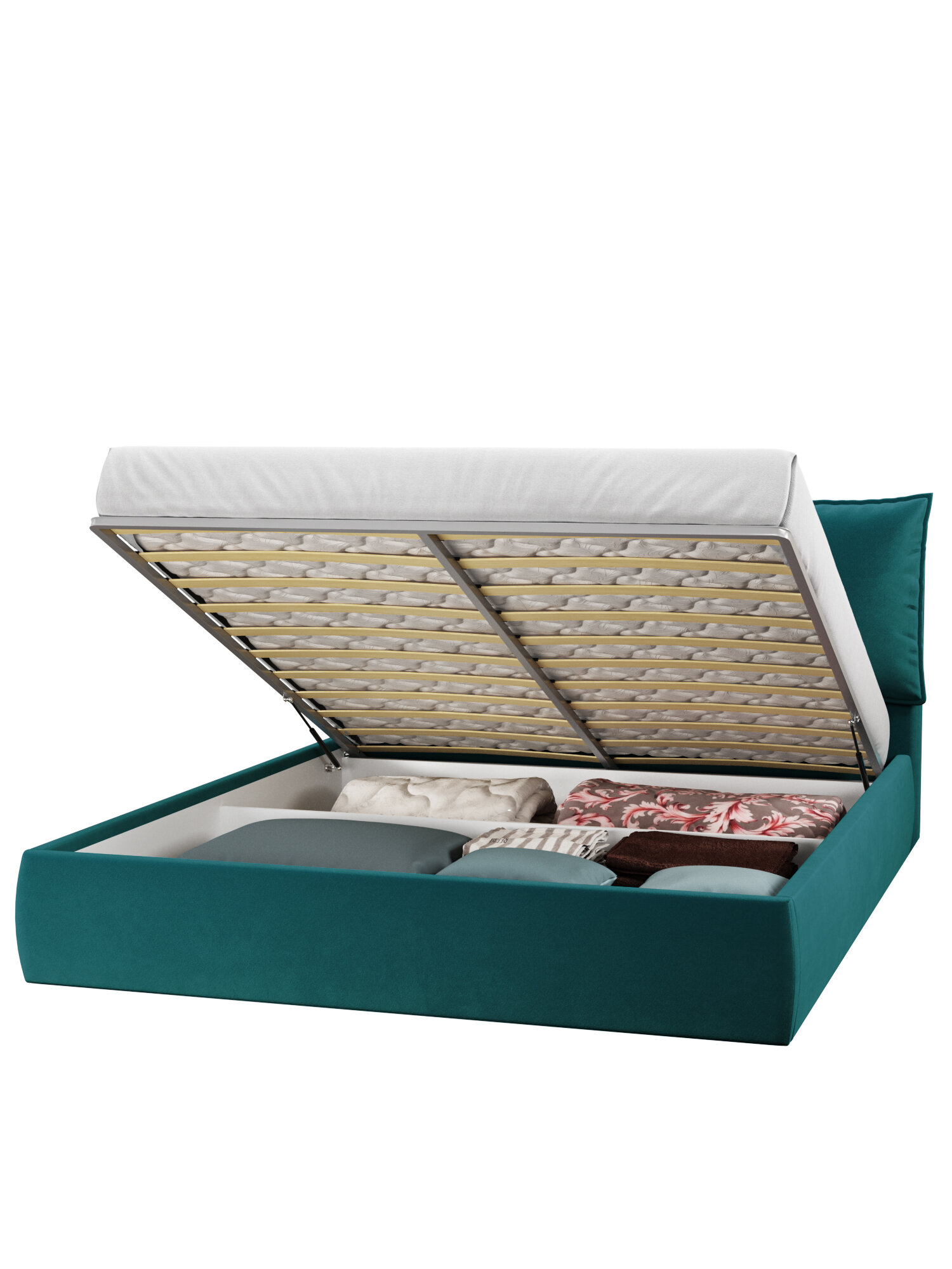 Купить Двуспальная кровать 160х200 с подъемным механизмом Британия для дома и спальни, вельвет бирюзовый, Ами Мебель