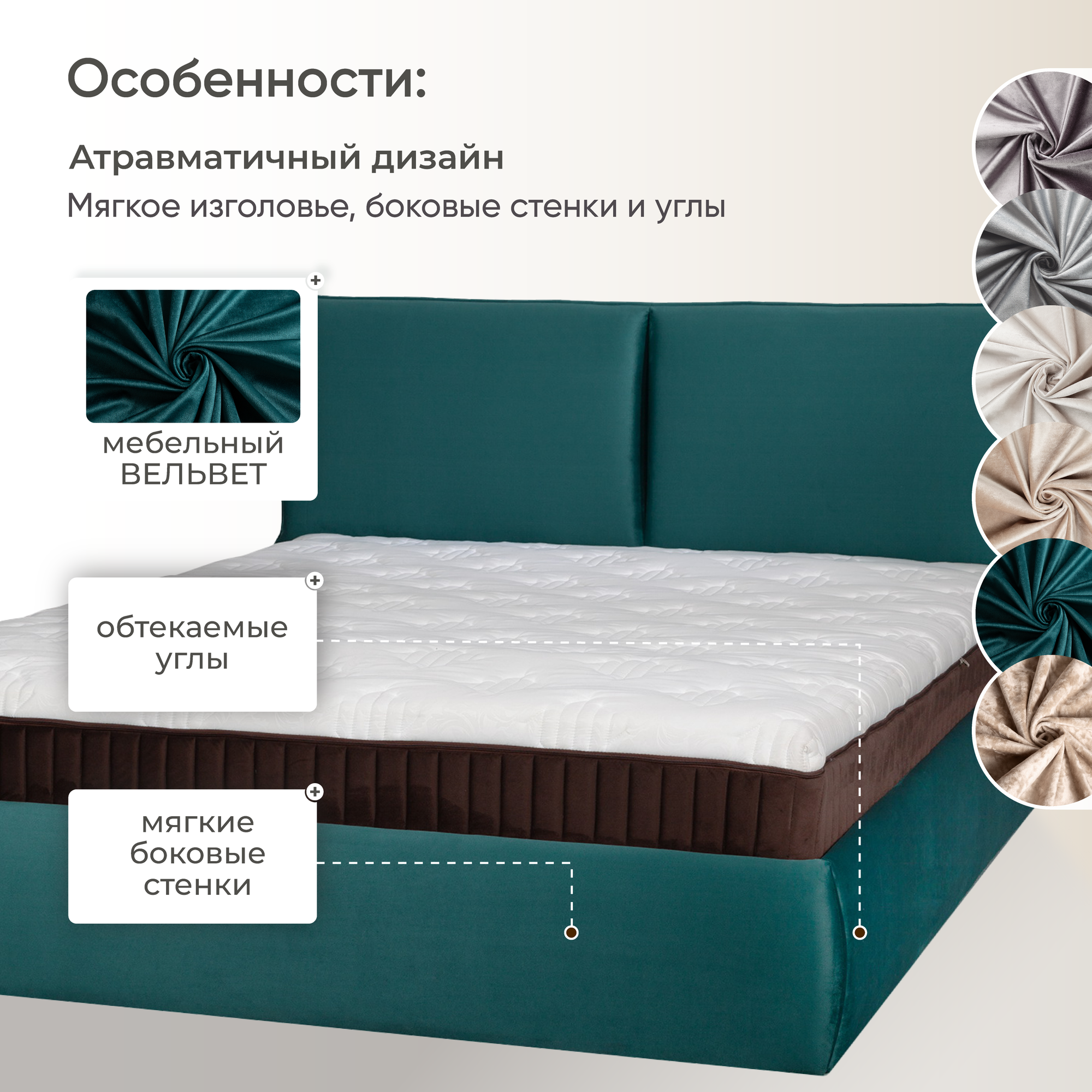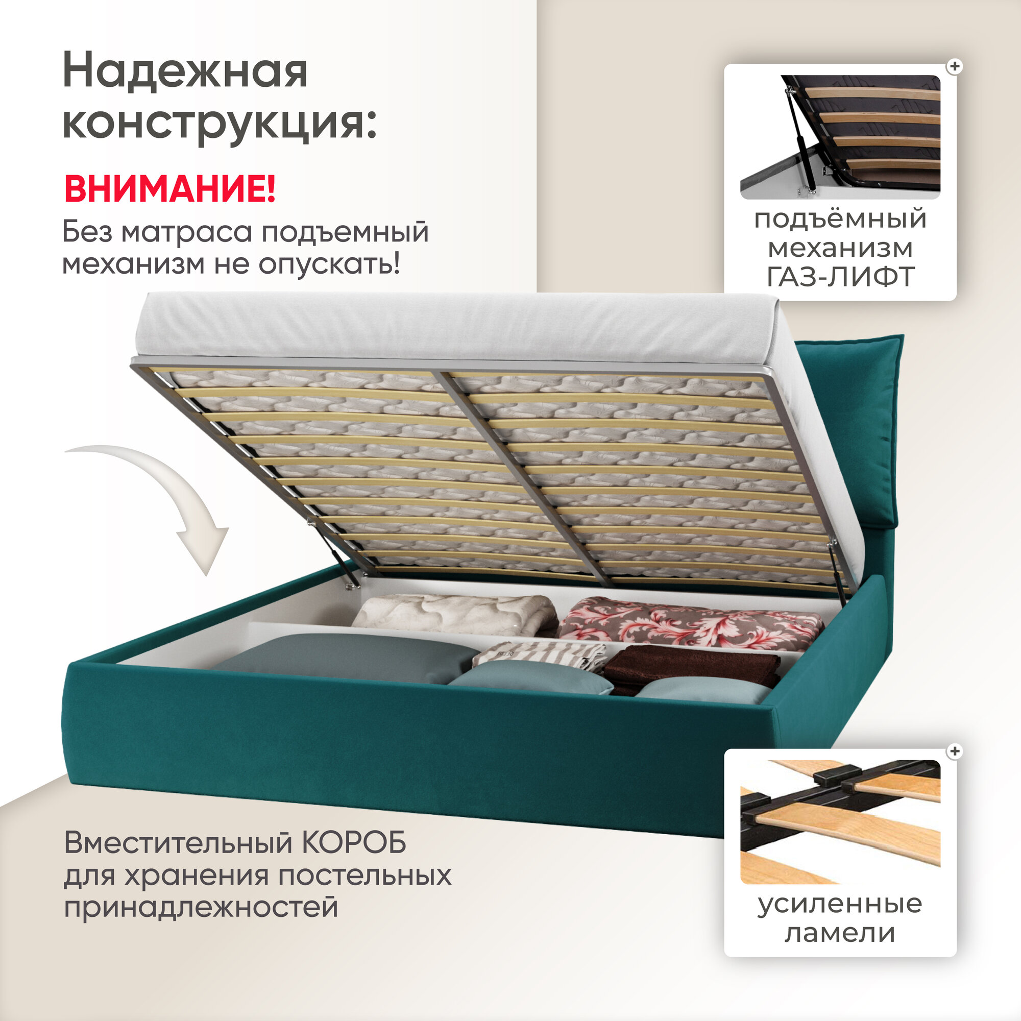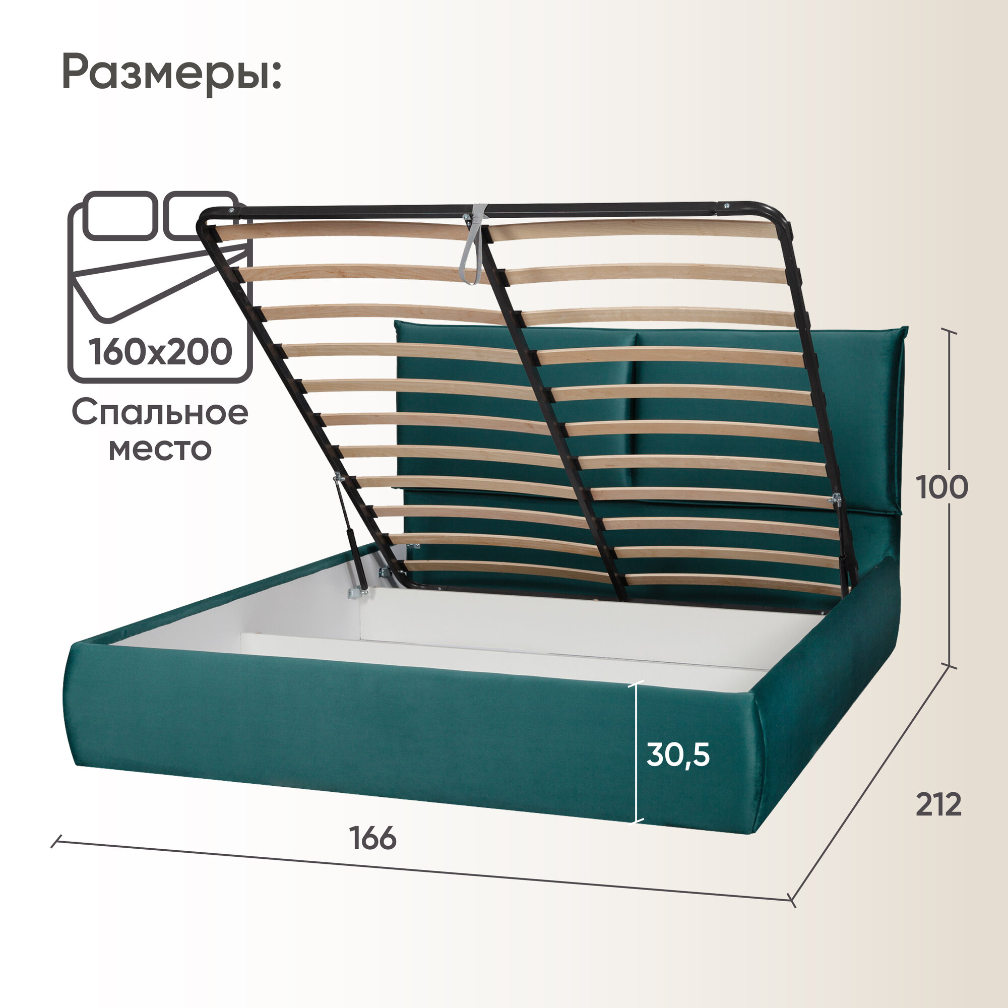 СохранитьДвуспальная кровать 160х200 с подъемным механизмом Британия для дома и спальни, вельвет бирюзовый, Ами Мебель интересное:
