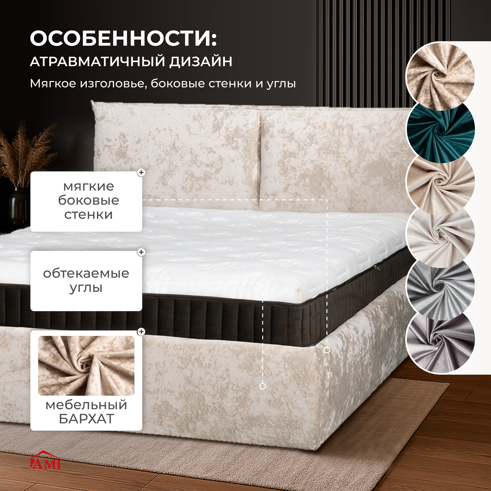 Двуспальная кровать 180х200 с подъемным механизмом Британия для дома и спальни, бархат бежевый, Ами Мебель
