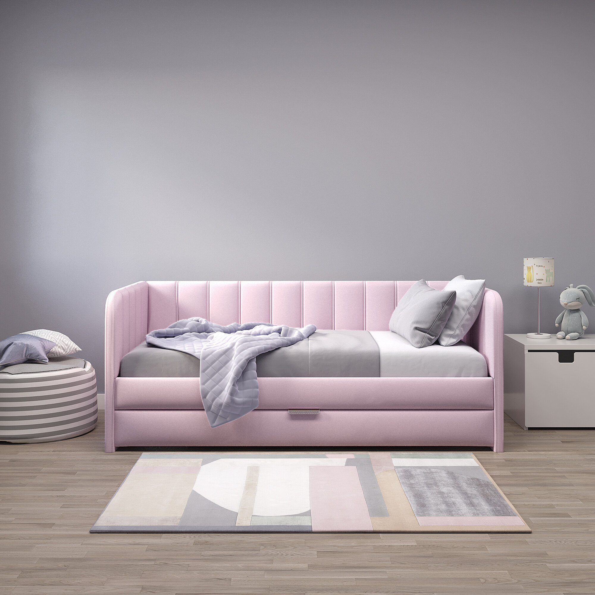 Futuka Kids Диван-кровать Crecker Teddy 326 с ящиком для белья (дополнительным спальным местом), цвет сирень, 180x90 см.