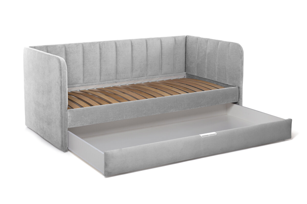 Futuka Kids Диван-кровать Crecker Newtone 020 с ящиком для белья (дополнительным спальным местом), цвет светло-серый, 160x80 см.