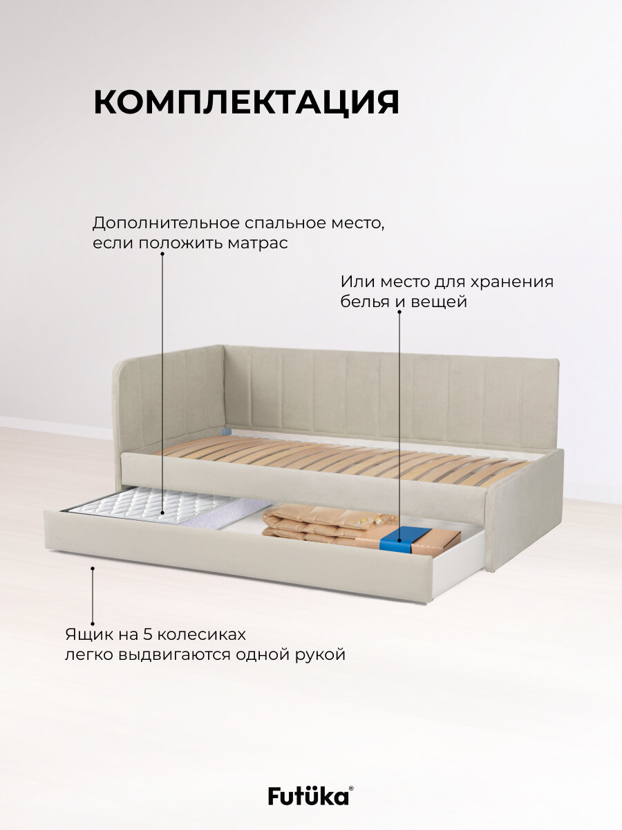 Futuka Kids Диван-кровать Crecker Newtone с ящиком для белья (дополнительным спальным местом), цвет Teddy 310, 180x90 см.