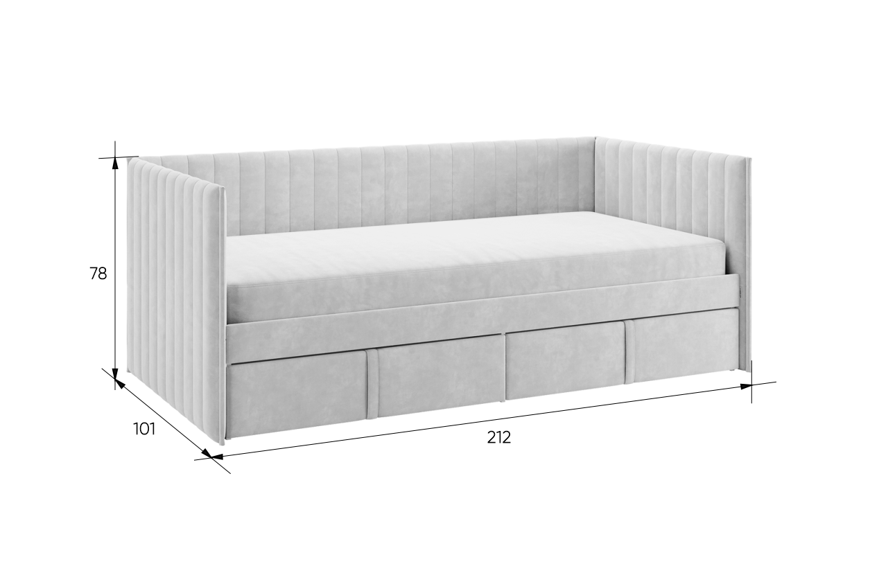 Кровать с ящиками "Твикс" (софа), 90*200 см, велюр Галька, Mebelson