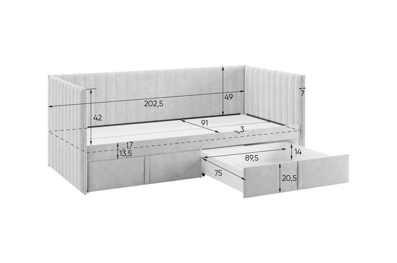 Купить Кровать с ящиками "Твикс" (софа), 90*200 см, велюр Галька, Mebelson