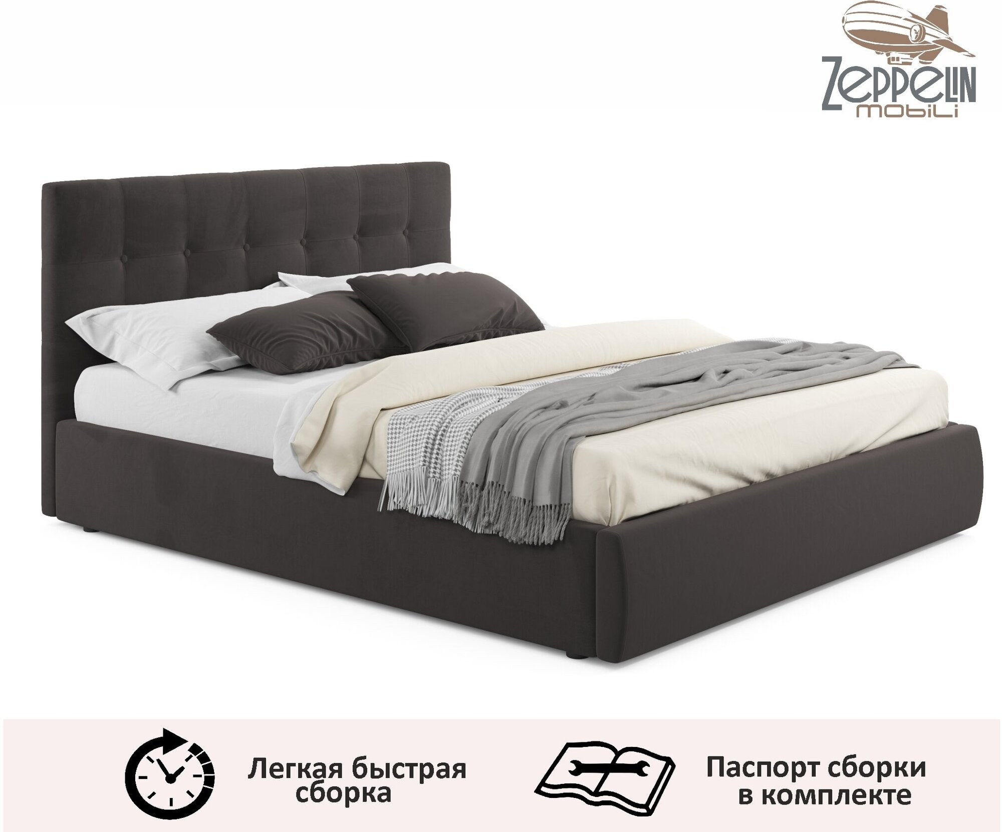 Кровать с матрасом Роза Серая Велюр 160х200