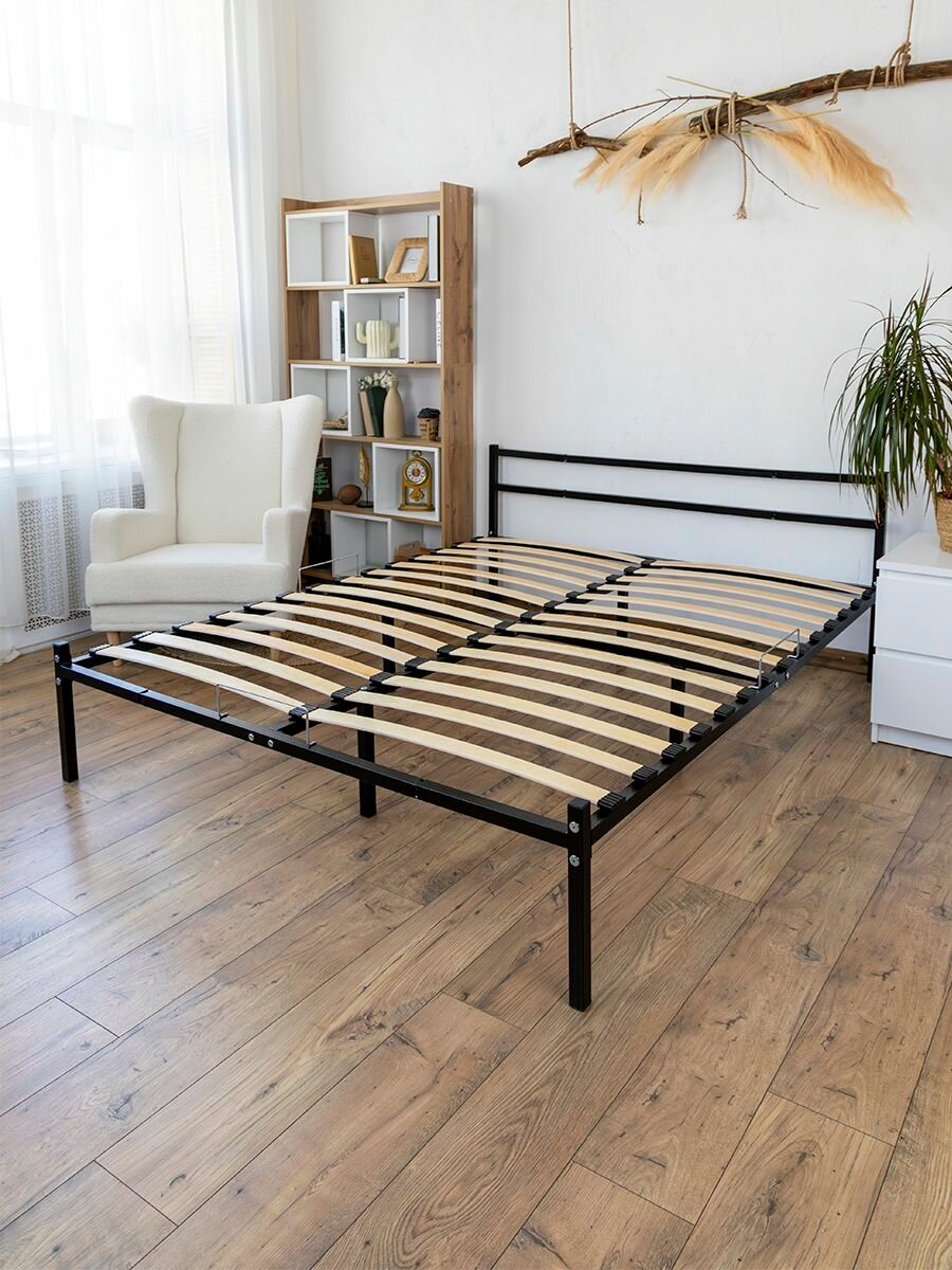 Кровать двуспальная 140х200 см Танго, металлическая с ортопедическим основанием, черная