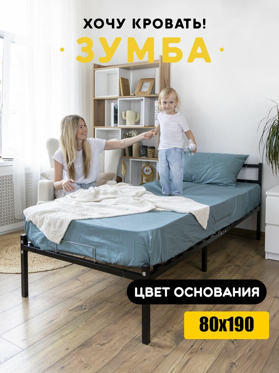 Кровать односпальная 80х200 см металлическая Зумба, с ортопедическим основанием, с изголовьем, черная