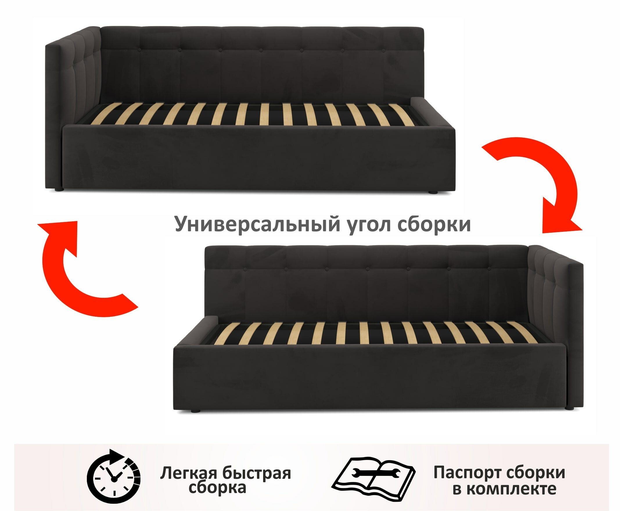 Односпальная кровать-тахта Bonna 900 темная угловая Zeppelin, с подъемным механизмом, 90х200, мягкая из велюра, с ящиком для хранения