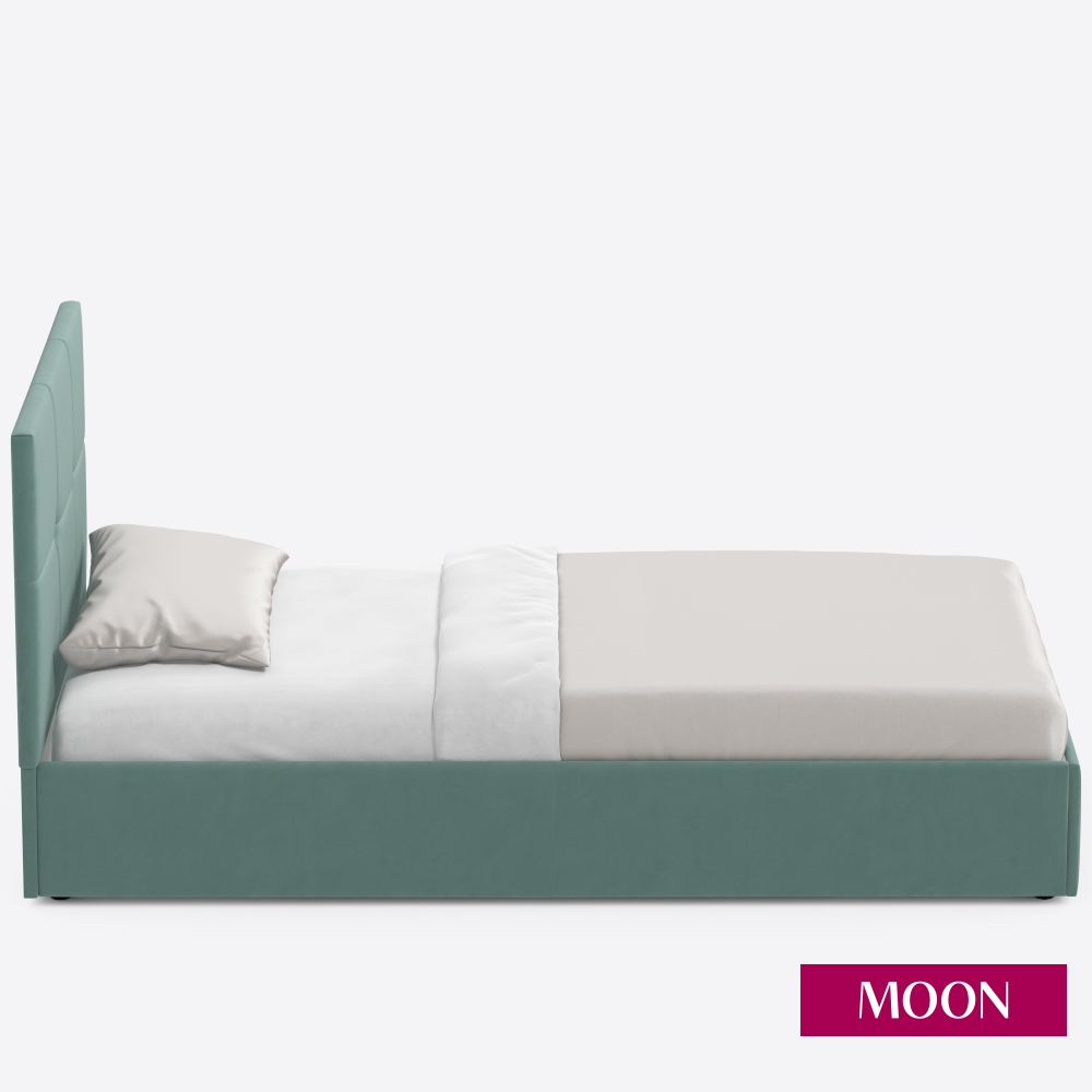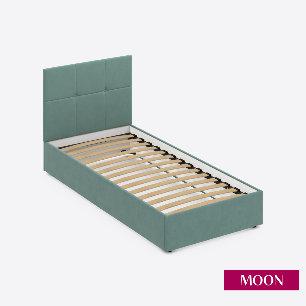 Кровать односпальная без подъемного механизма MOON FAMILY 1261, размер 90х200 см, велюр зеленый. Ортопедическое основание в комплекте