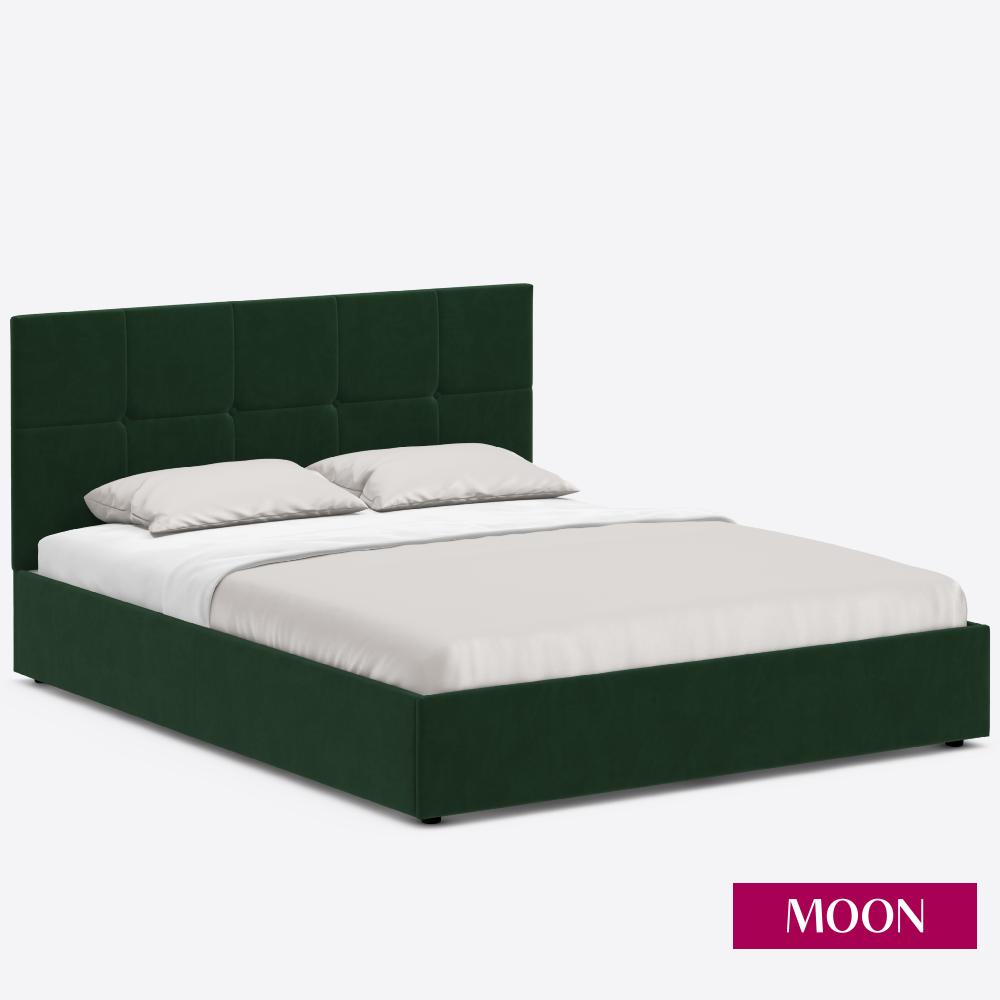 Купить Кровать двуспальная без подъемного механизма MOON FAMILY 1261, размер 140х200 см, велюр зеленый. Ортопедическое основание в комплекте