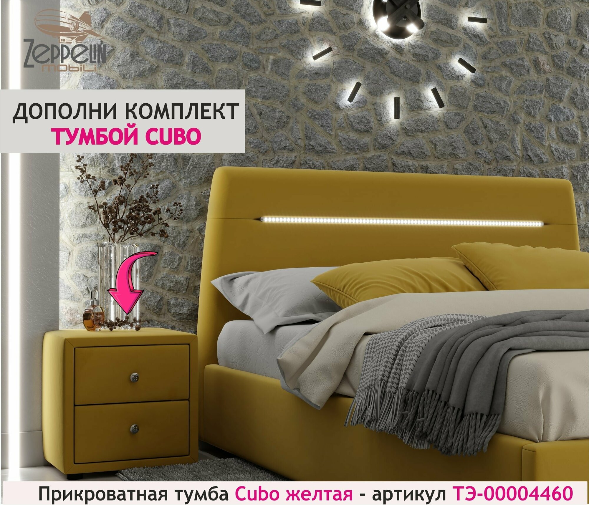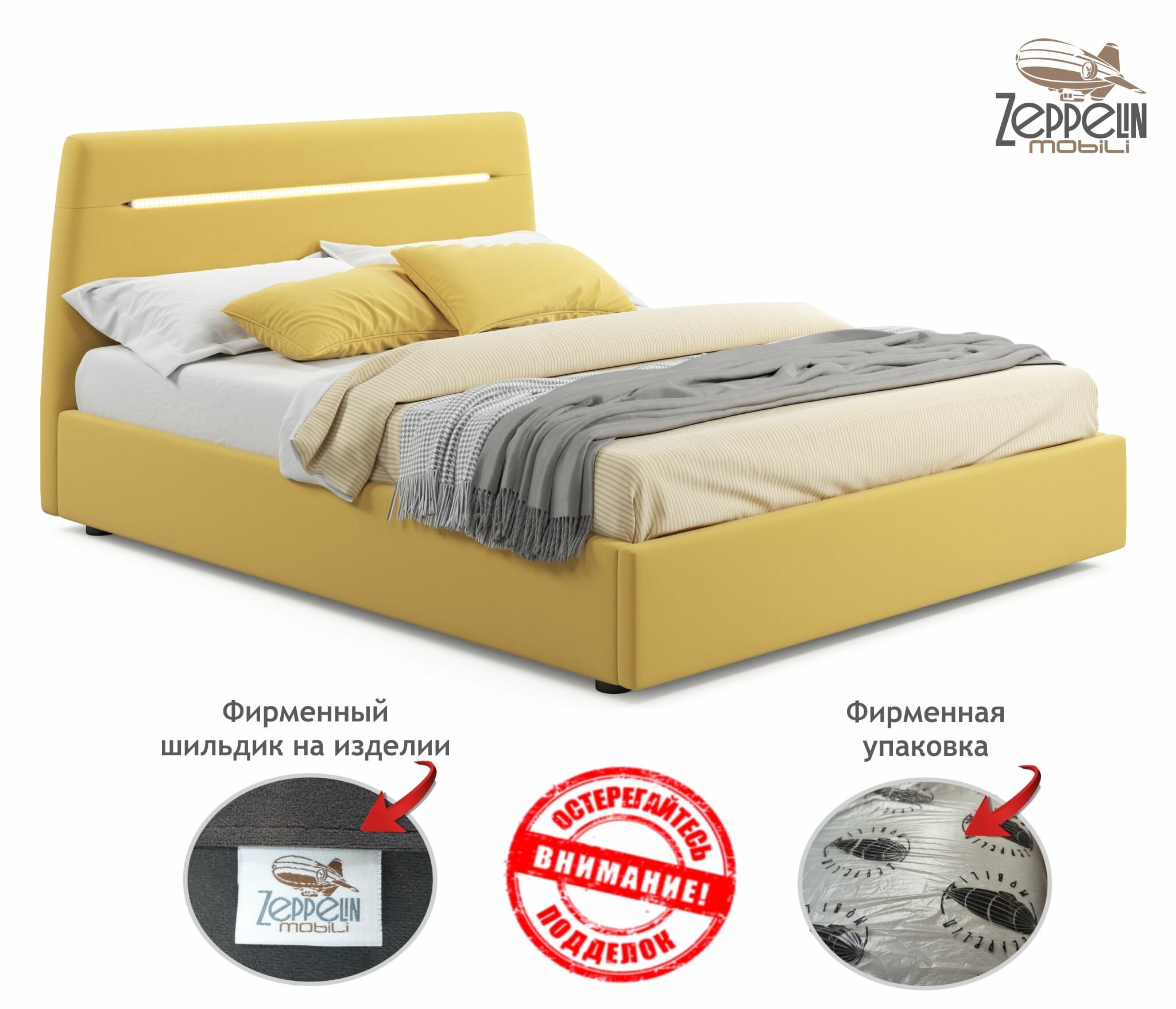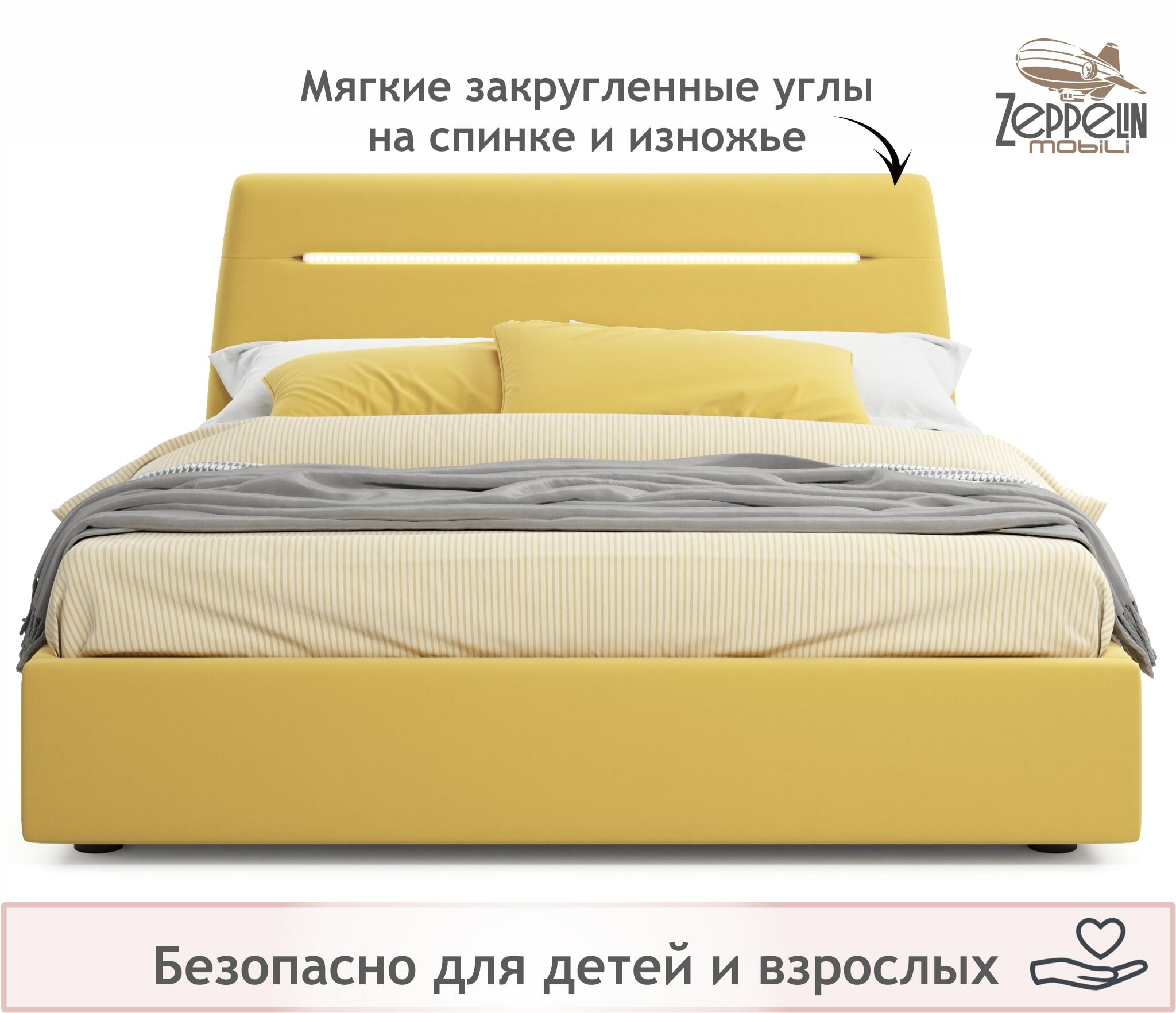 СохранитьКровать с подсветкой NEO 160х200 Zeppelin Mobili подъемная из велюра желтая, с ортопедическими ламелями, с ящиком для хранения интересное: