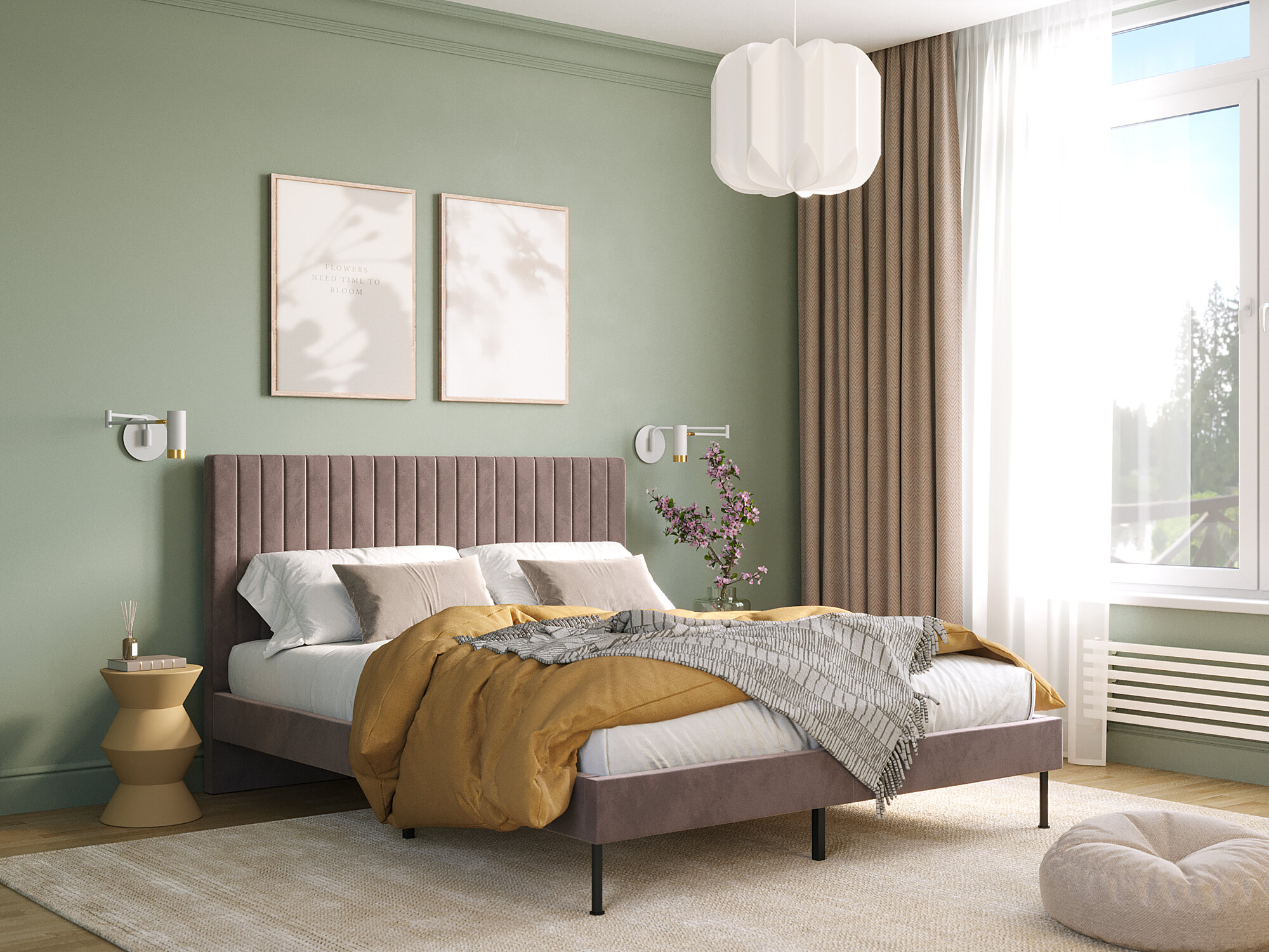 Купить NOVEL (новел) кровать 140 х 200 с ортопедическим основанием, Велюр Кофейный, 1516 х 1110 х 2131 мм