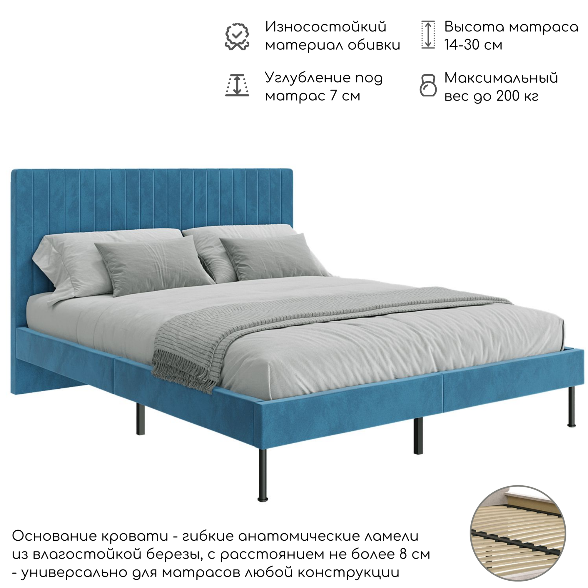 NOVEL (новел) кровать 160 х 200 с ортопедическим основанием, Велюр Бирюзовый, 1716 х 1110 х 2131 мм