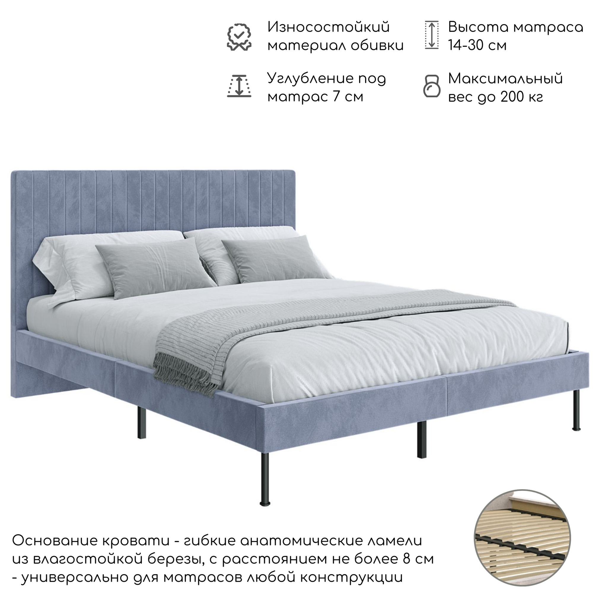 Купить NOVEL (новел) кровать 160 х 200 с ортопедическим основанием, Велюр Светло-Серый, 1716 х 1110 х 2131 мм