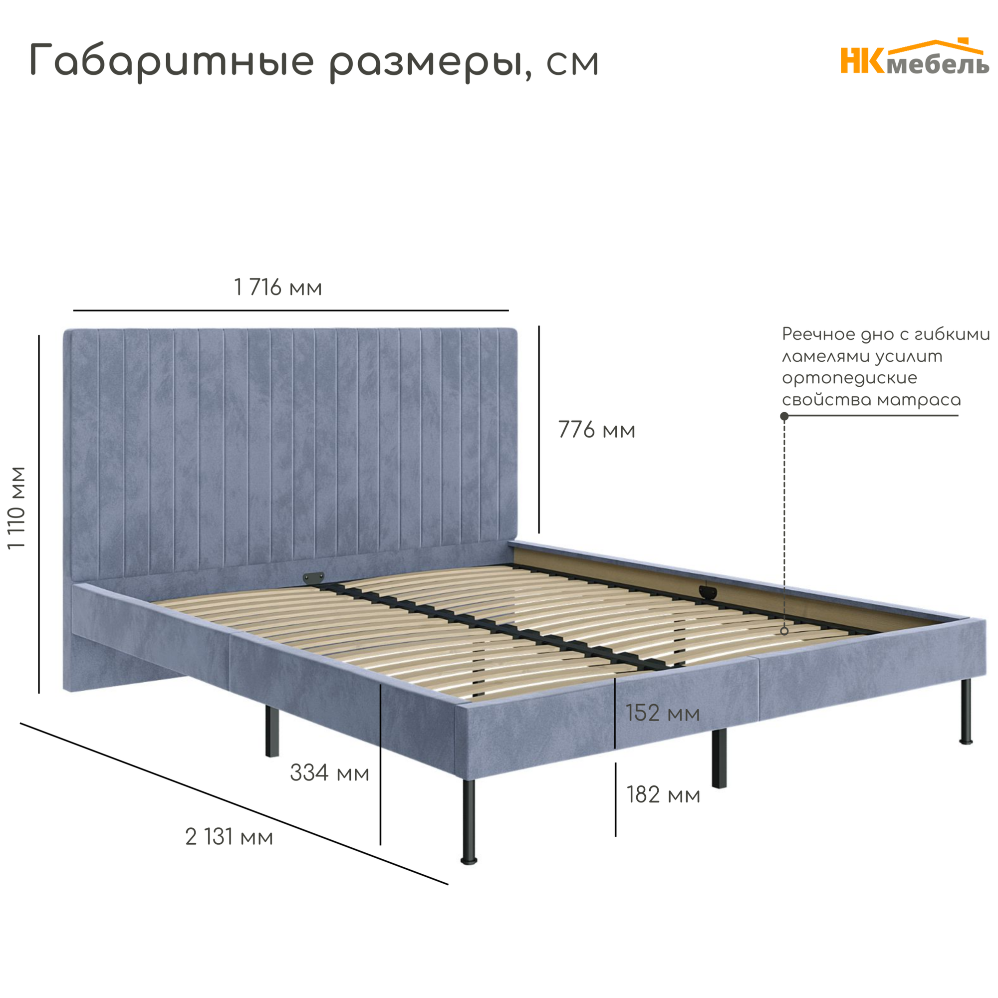 NOVEL (новел) кровать 160 х 200 с ортопедическим основанием, Велюр Серый, 1716 х 1110 х 2131 мм