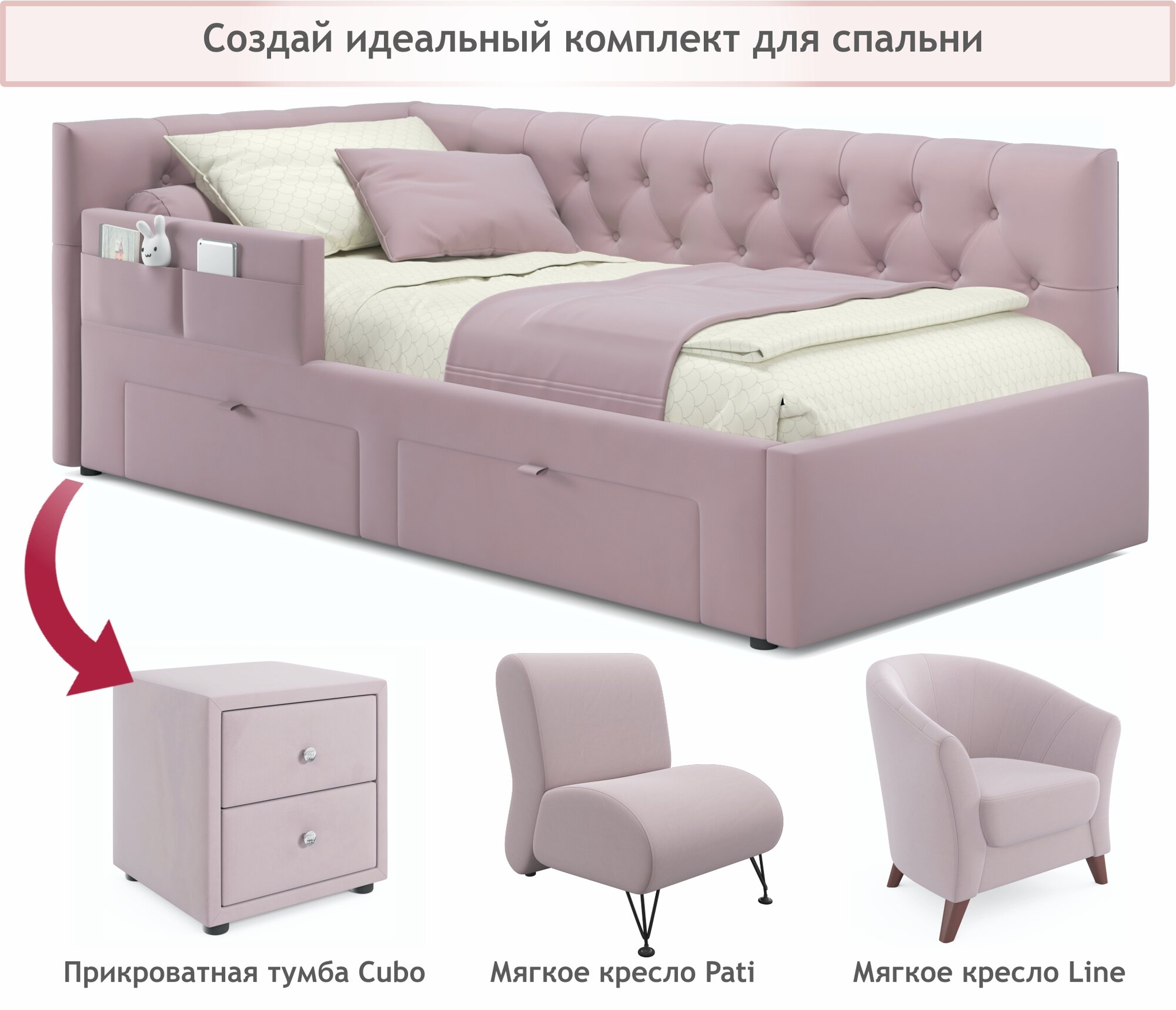 СохранитьОдноспальная кровать-тахта Afelia Zeppelin с ящиками и бортиком 900 лиловая интересное: