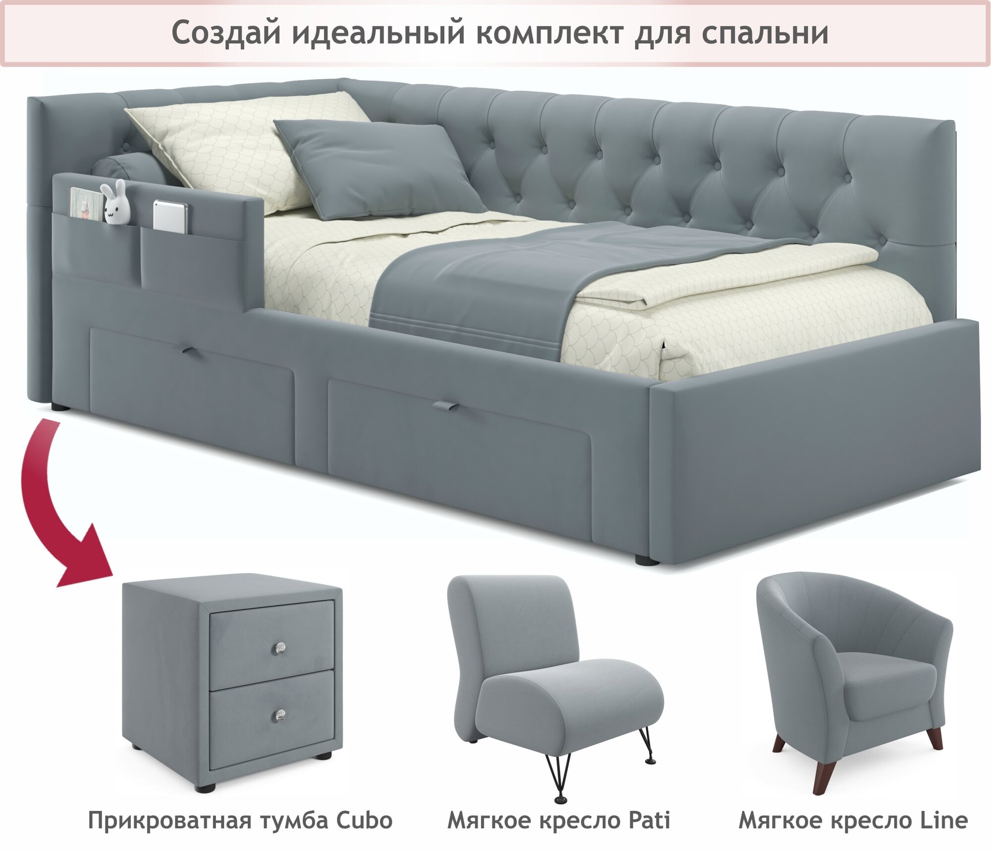 СохранитьОдноспальная кровать-тахта Afelia Zeppelin с ящиками и бортиком 900 серая интересное: