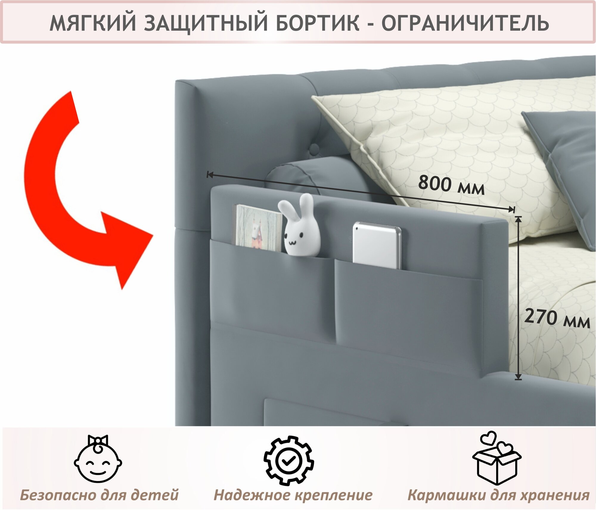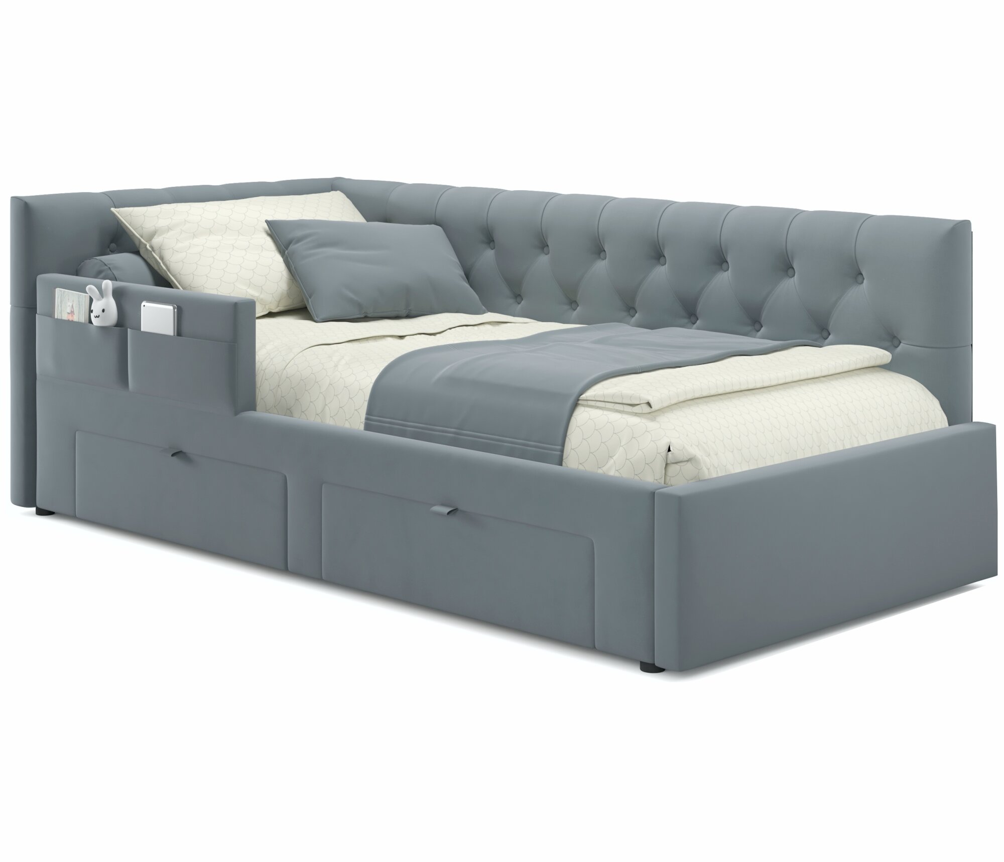 Купить Односпальная кровать-тахта Afelia Zeppelin с ящиками и бортиком 900 серая