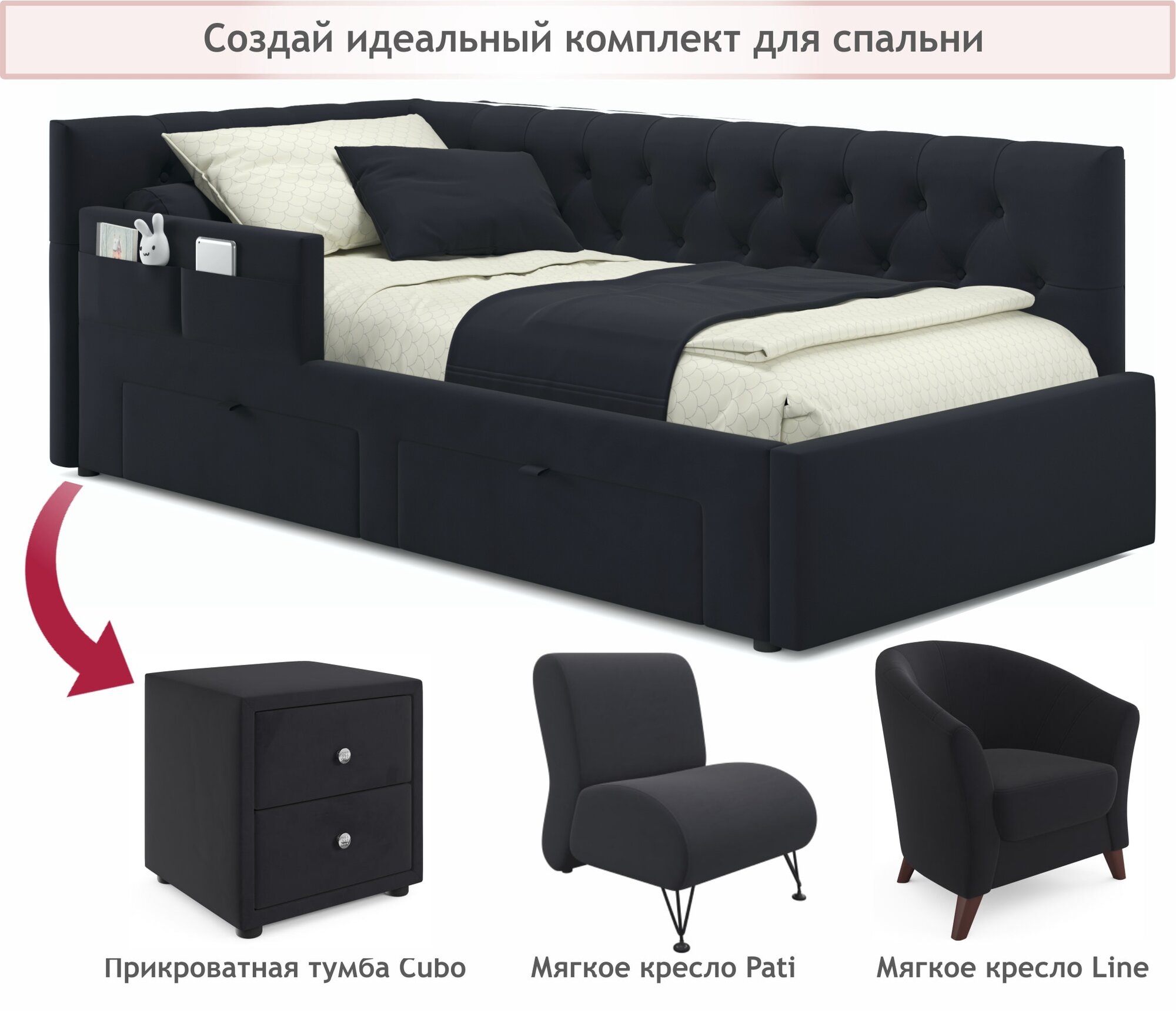 СохранитьОдноспальная кровать-тахта Afelia Zeppelin с ящиками и бортиком 900 темная интересное: