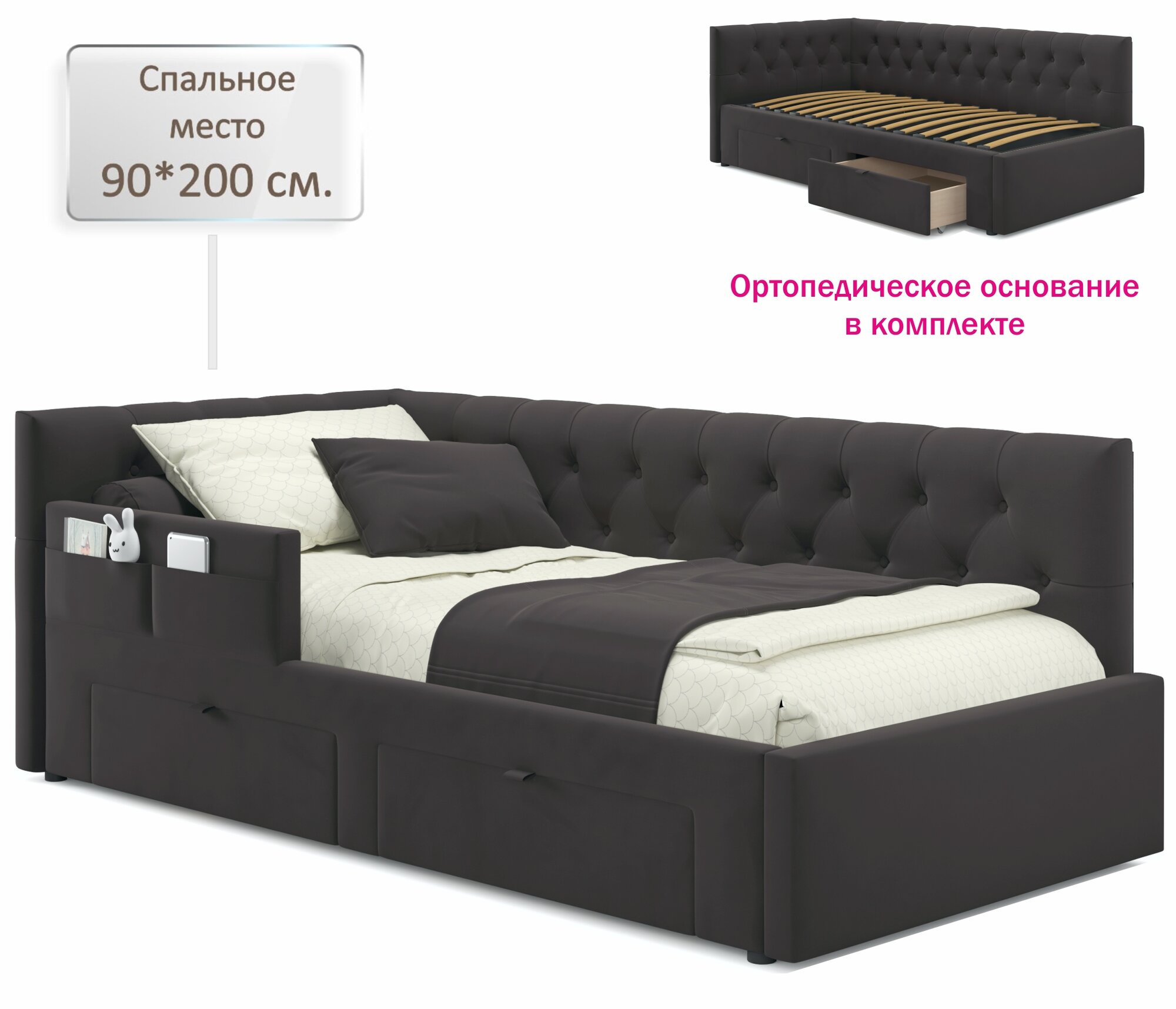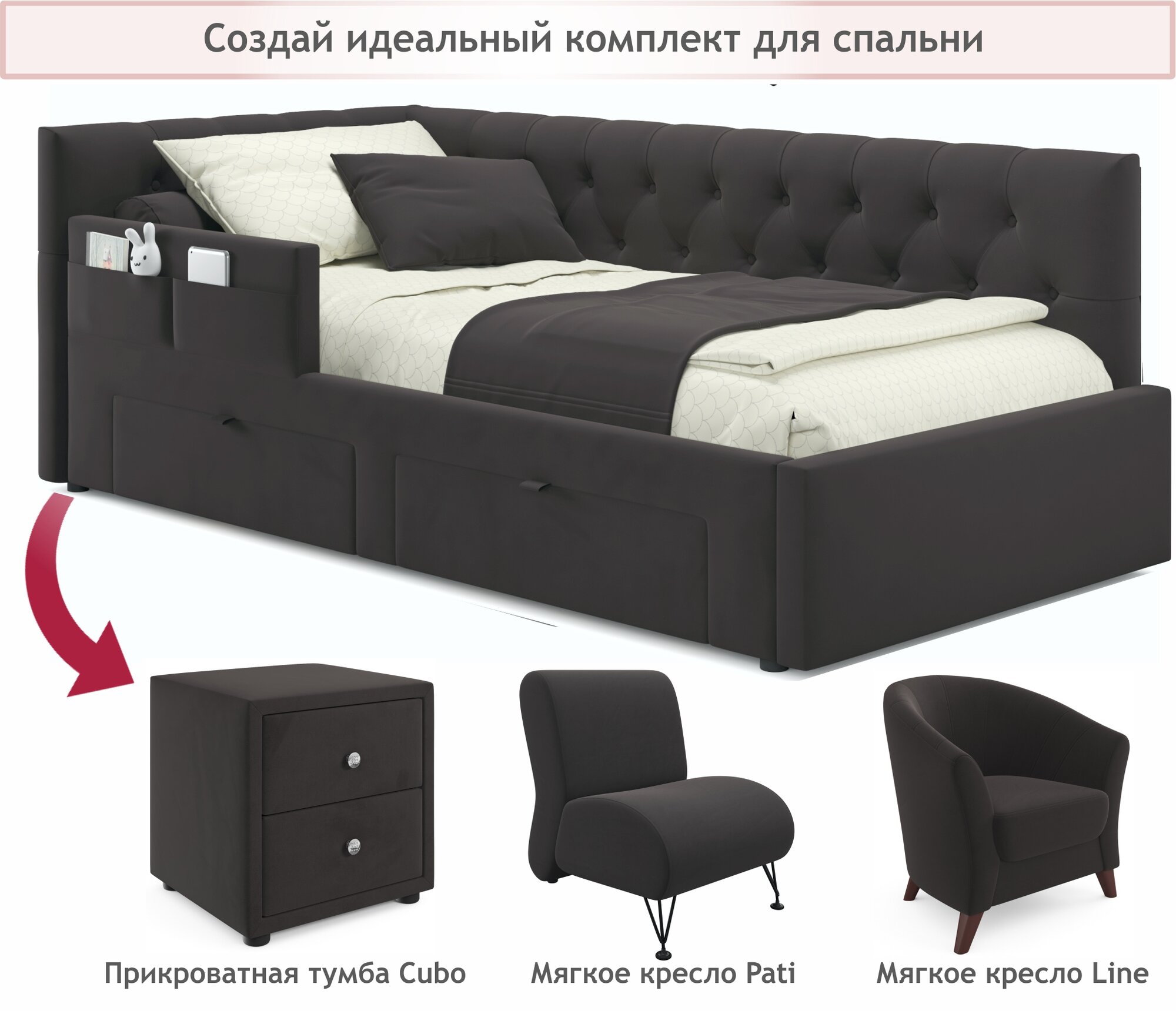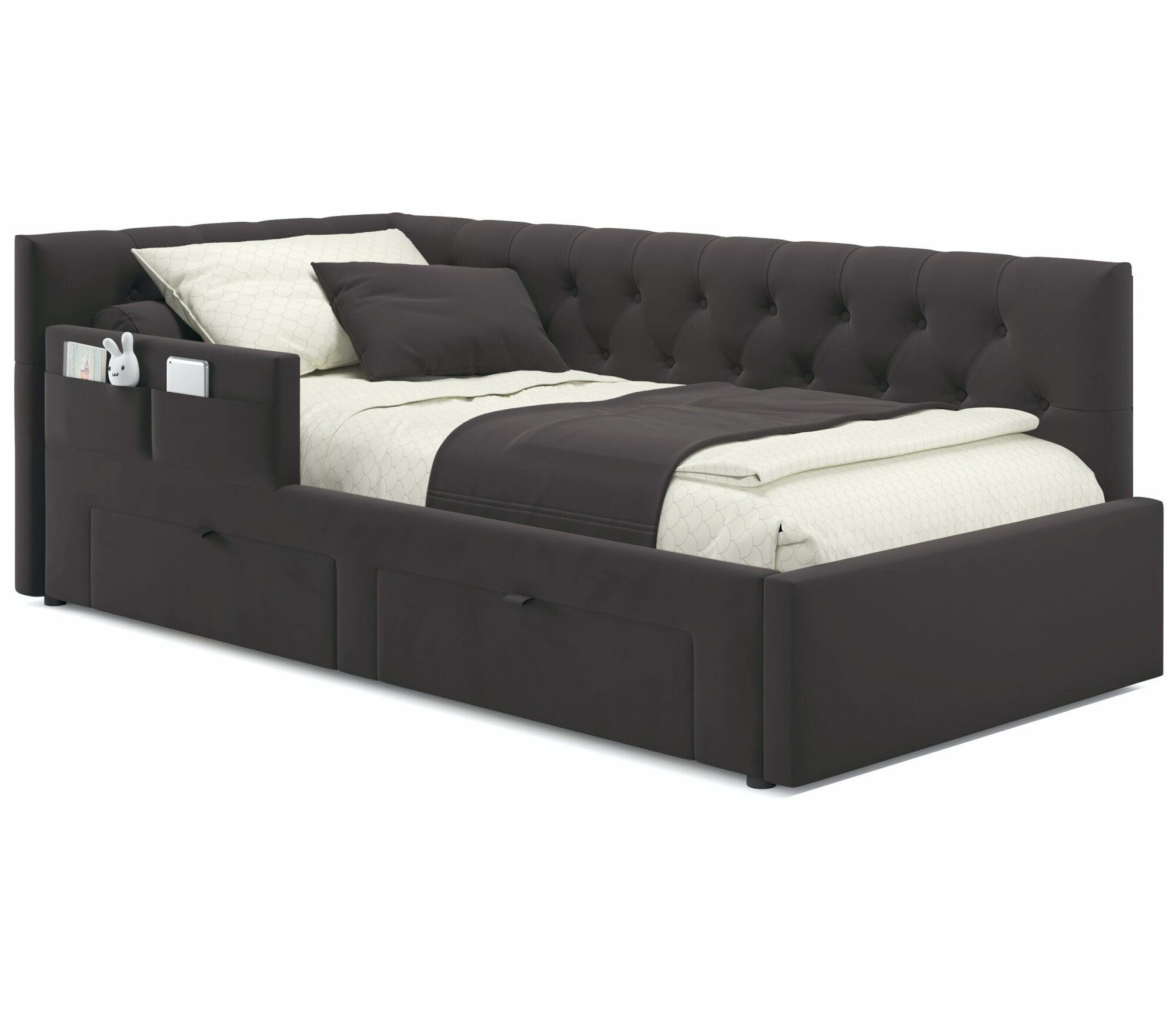 Односпальная кровать-тахта Afelia Zeppelin с ящиками и бортиком 900 темная