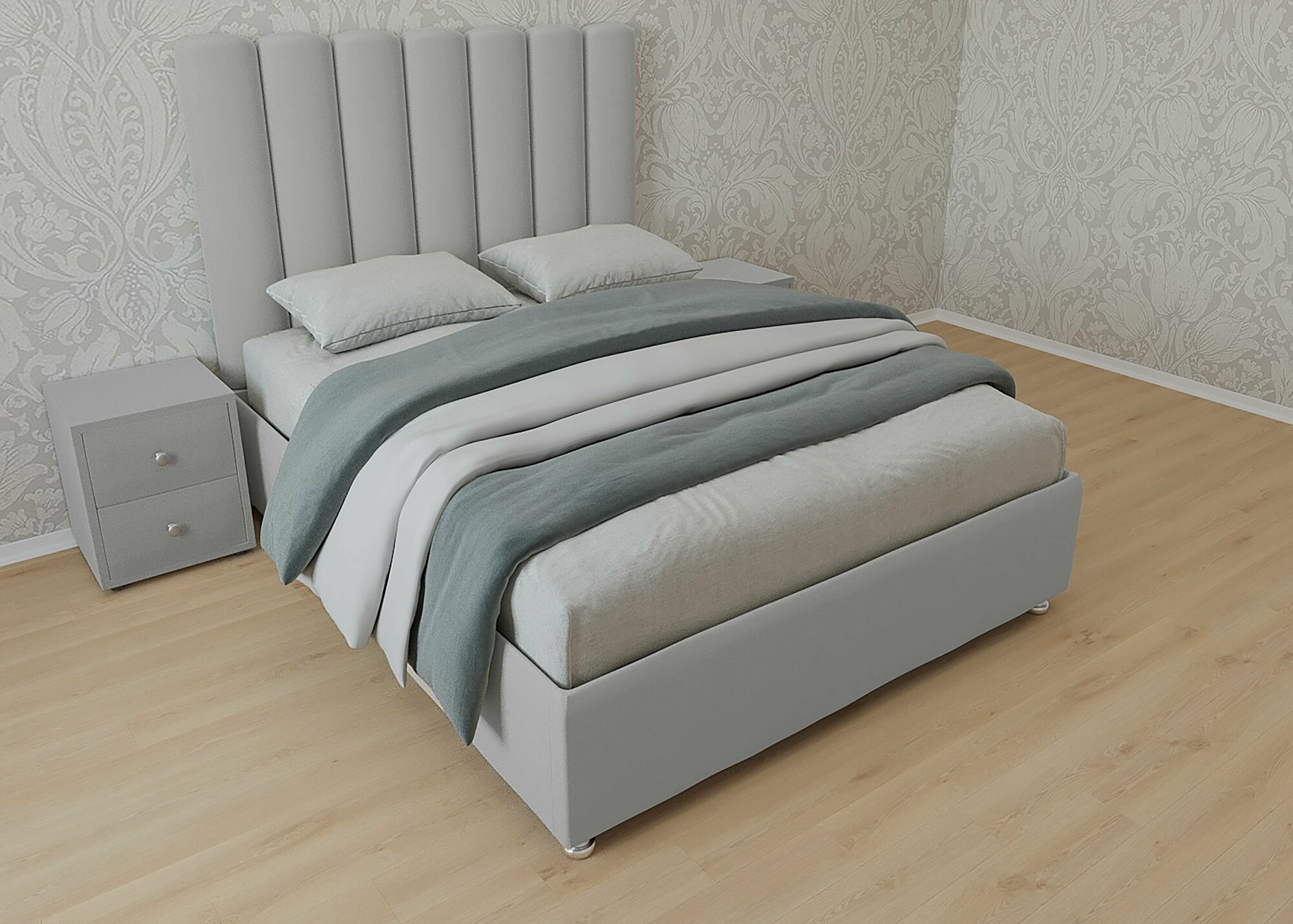 Двуспальная кровать Женева Нью 180x200 с подъемным механизмом и с коробом для белья велюр серый ножки 13 см хром