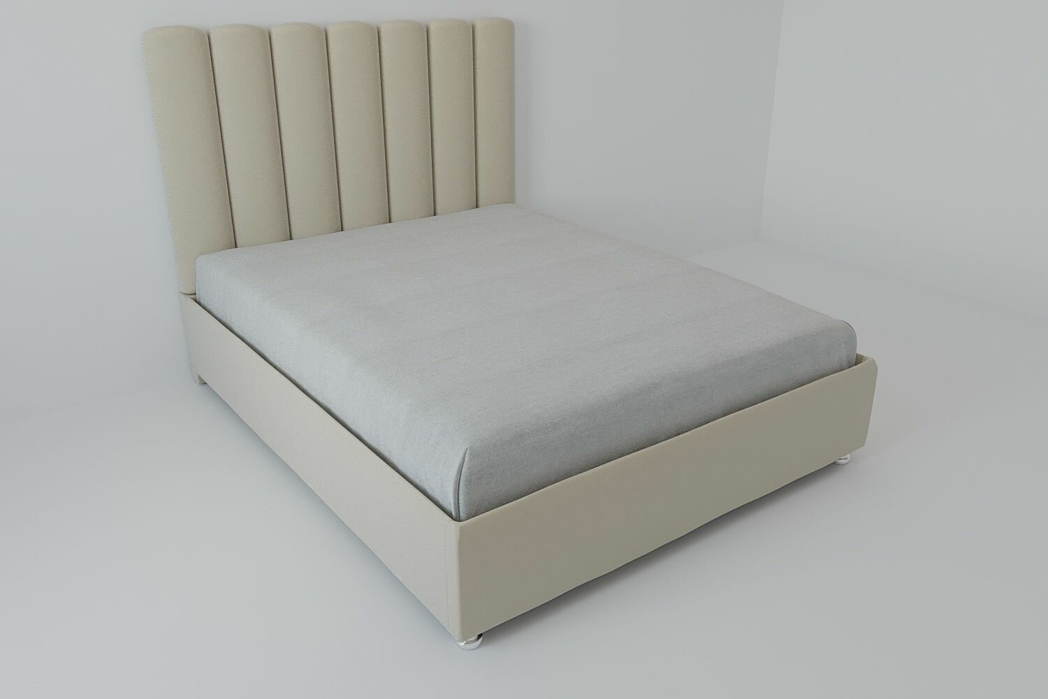 Полутороспальная кровать Женева Нью 140x200 с подъемным механизмом и с коробом для белья велюр бежевый без ножек