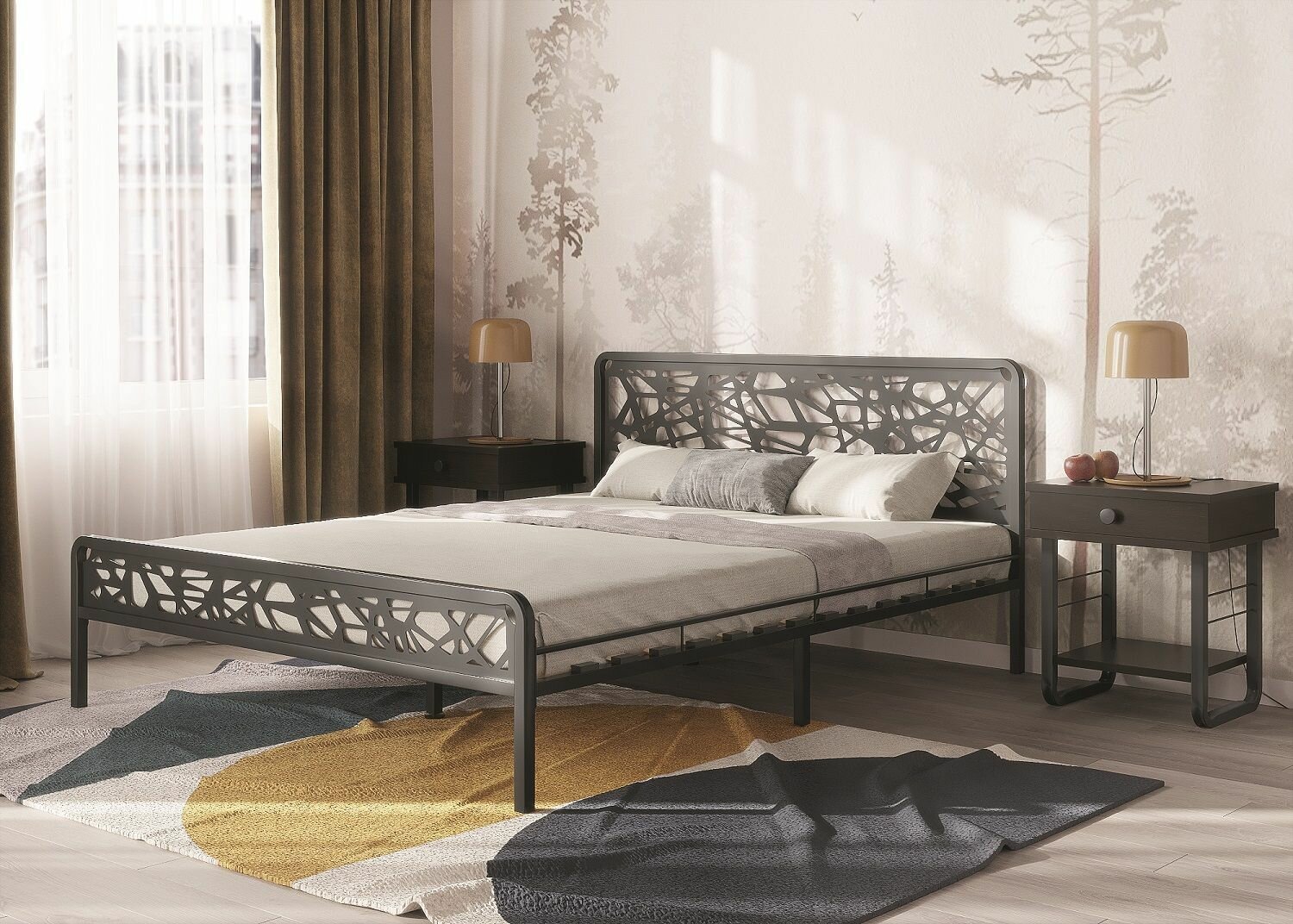 Двуспальная кровать орион, металлическая, железная, кованая, черная, 140х200 см