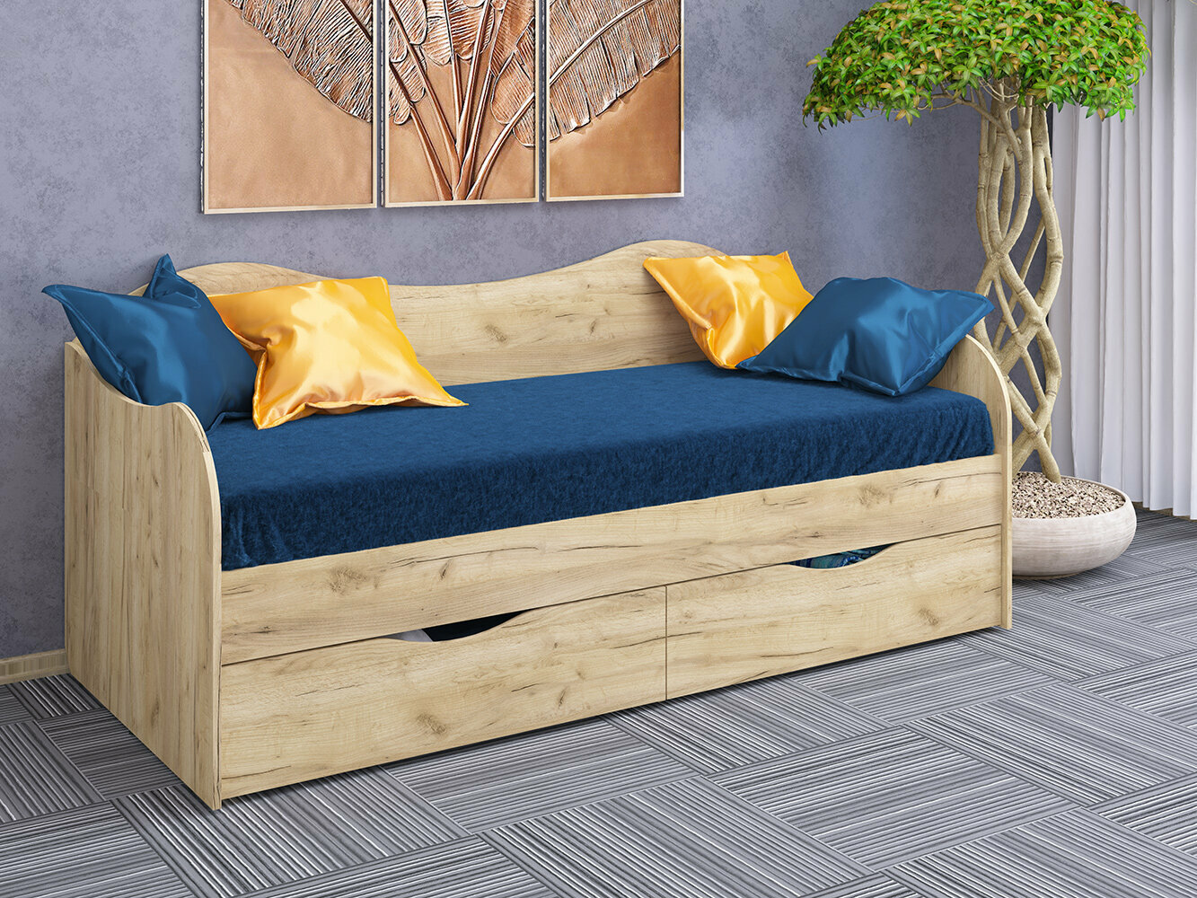 Кровать с ящиками Пирамида "Бокс", Дуб крафт золотой, ЛДСП, 200 х 90 см