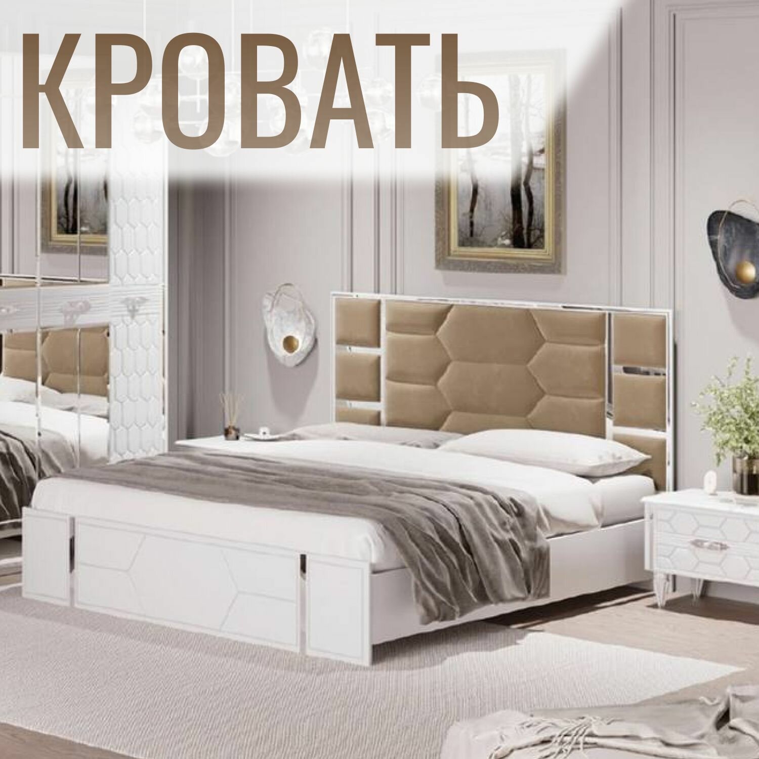 Двуспальная кровать Олимпия, 180x200х130 см, бежево-серебристая, велюр, МДФ