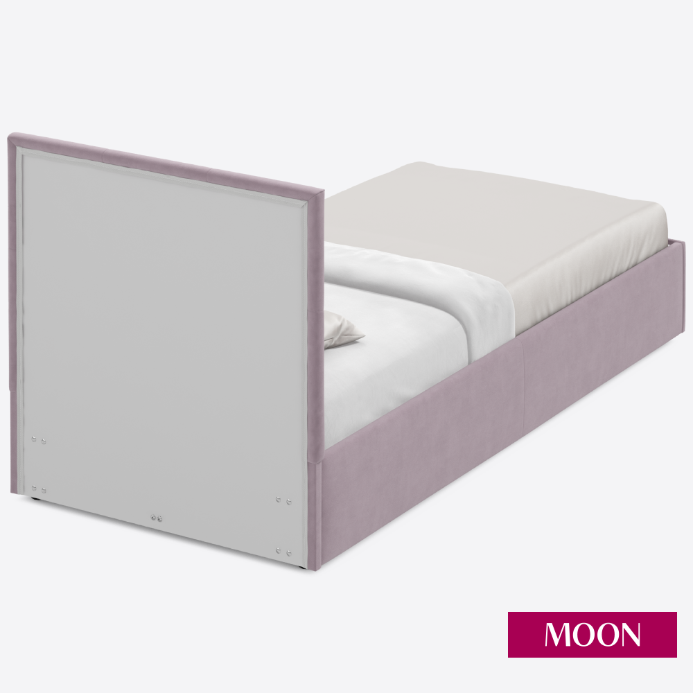 СохранитьКровать односпальная с подъемным механизмом MOON FAMILY 1261, размер 90х200 см, велюр розовый. Ортопедическое основание в комплекте интересное: