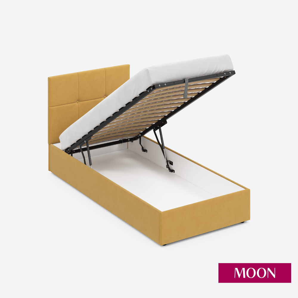 СохранитьКровать односпальная с подъемным механизмом MOON FAMILY 1261, размер 90х200 см, велюр желтый. Ортопедическое основание в комплекте интересное: