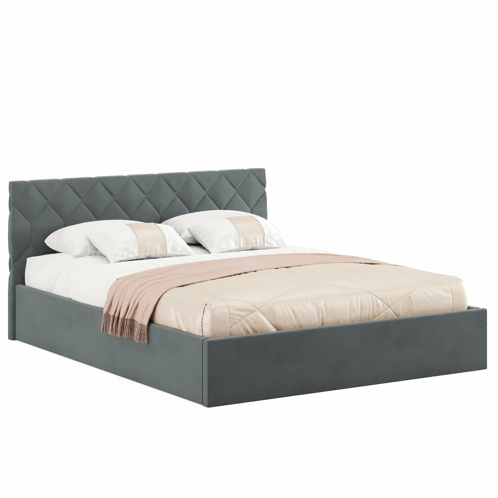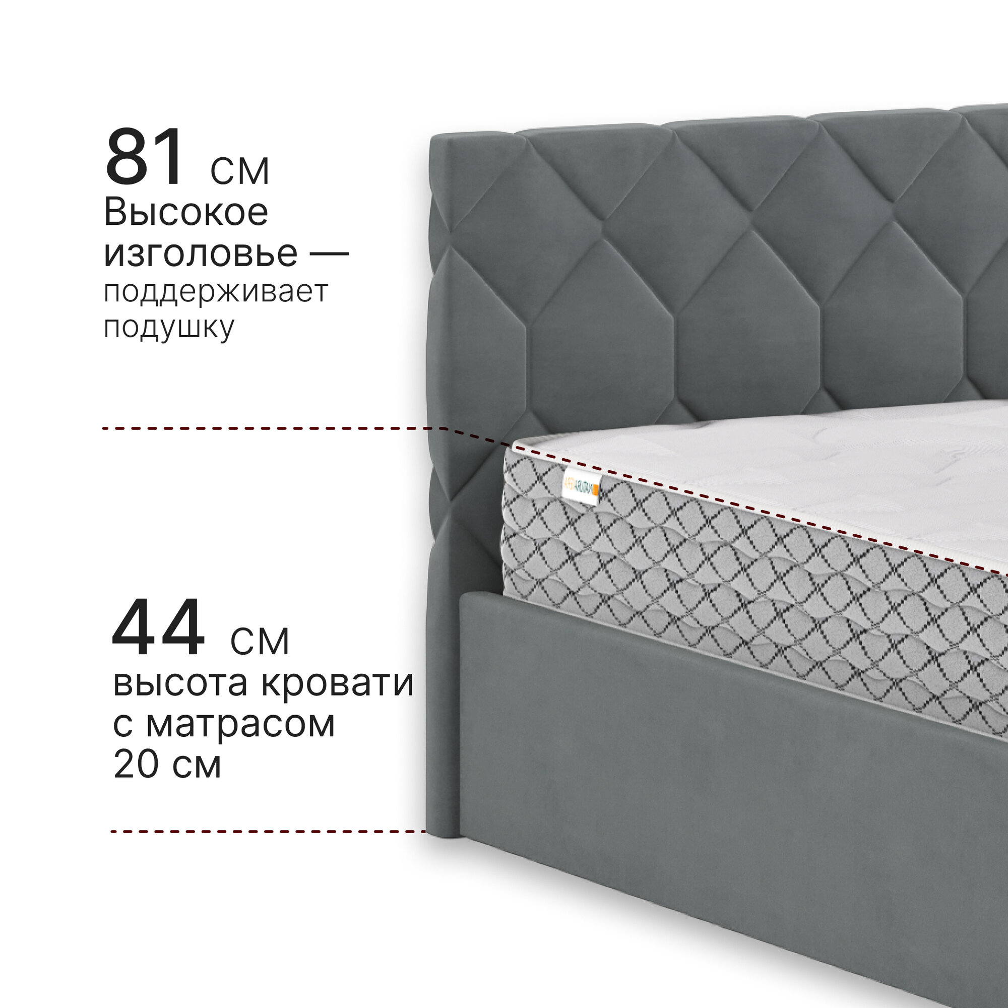Кровать с матрасом Роза Серая Велюр 160х200