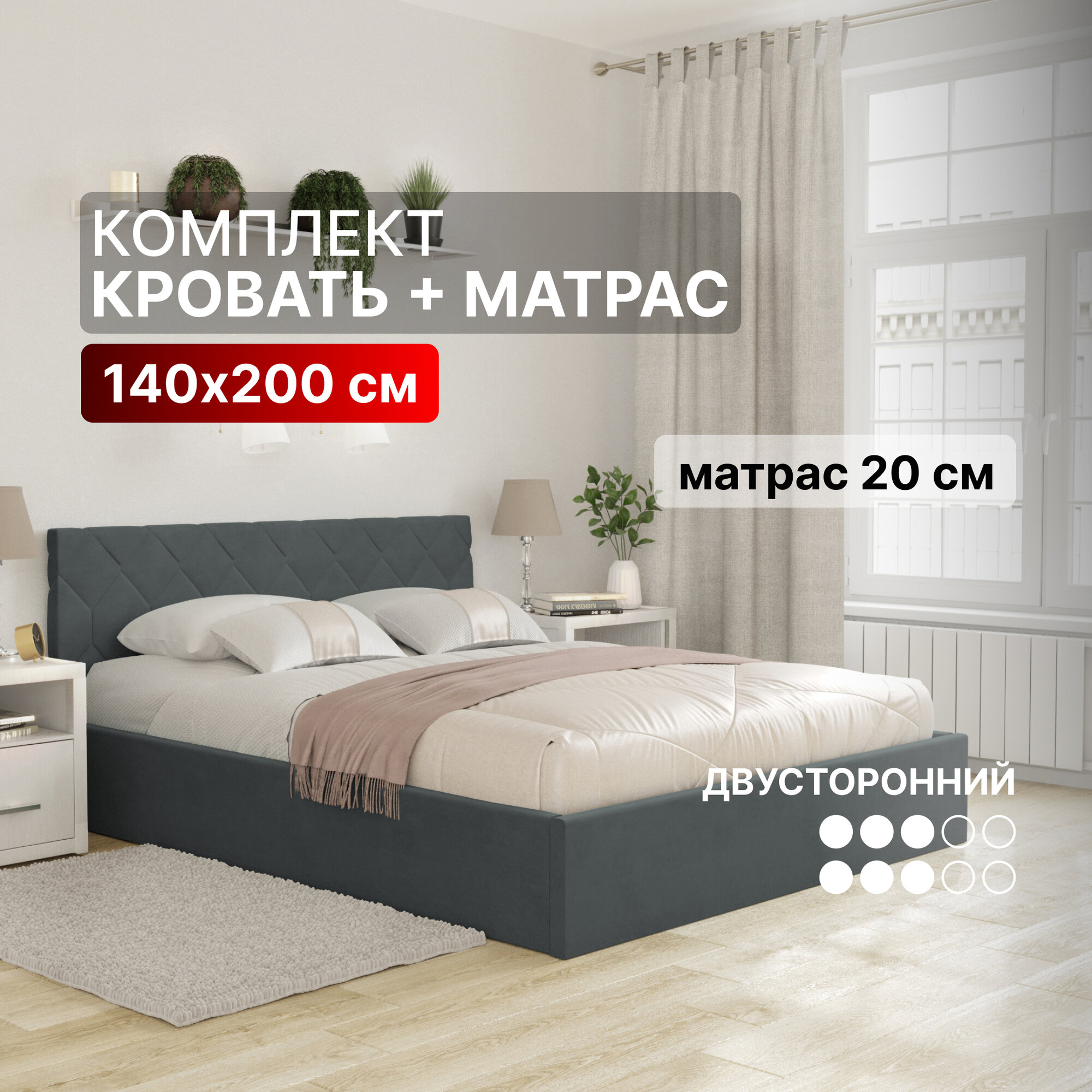 СохранитьКровать 140х200 с матрасом c подъемным механизмом и местом для хранения Техас темно-серый интересное: