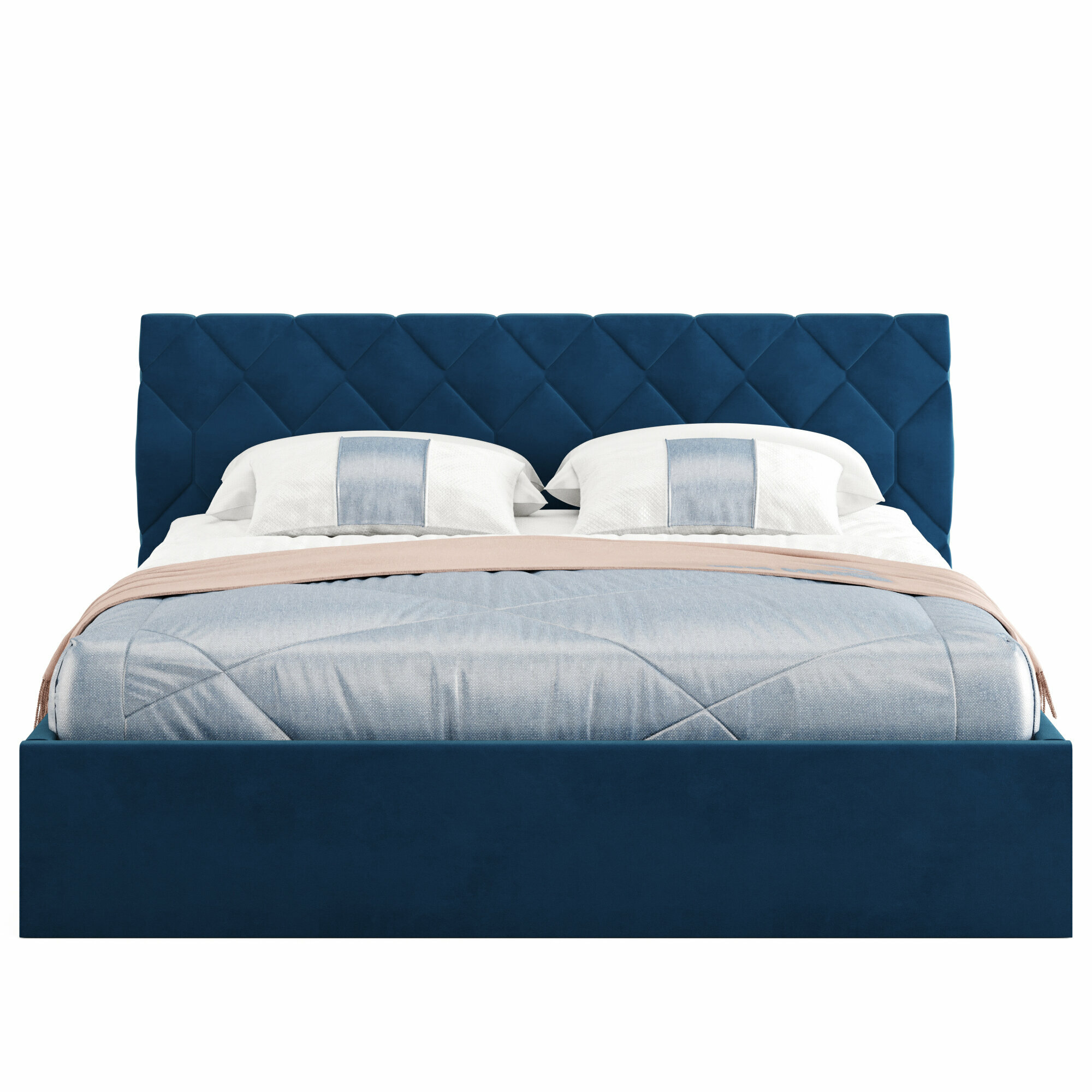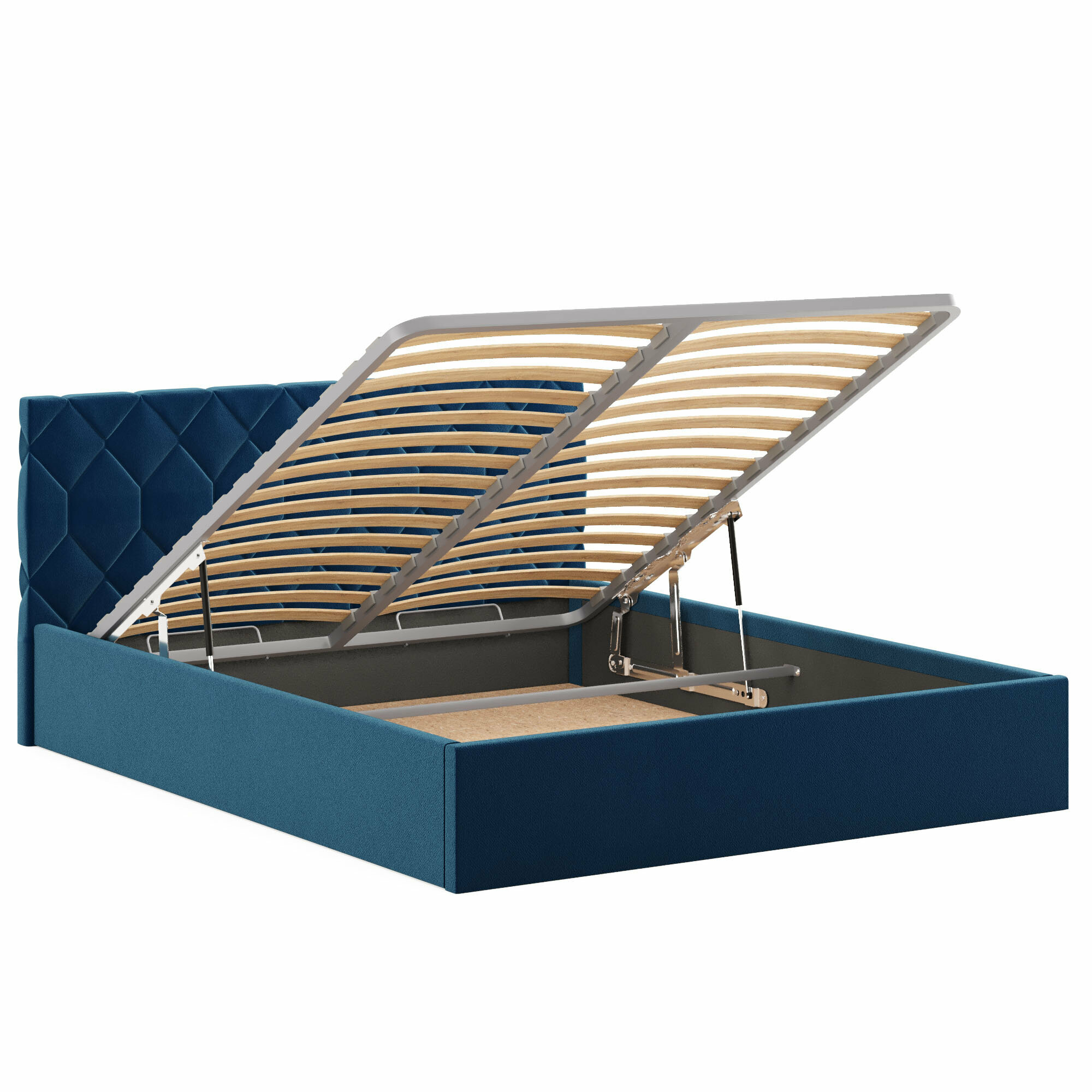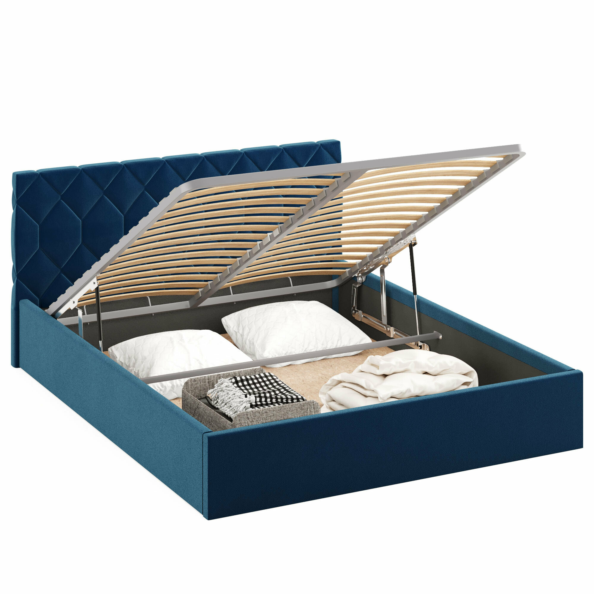 Кровать 160х200 с матрасом c подъемным механизмом и местом для хранения Техас синий