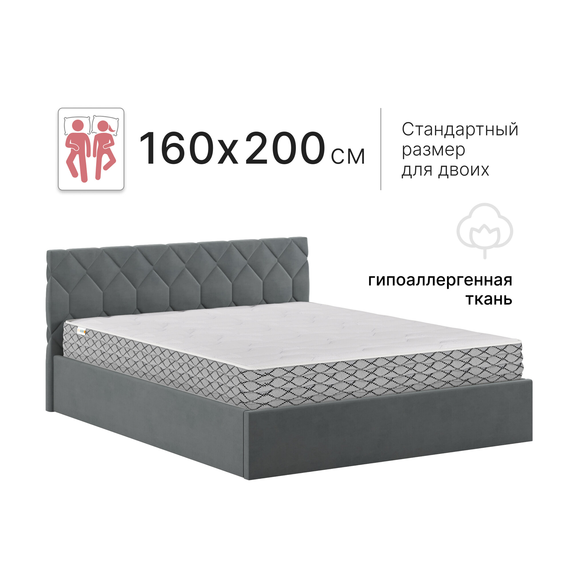 Купить Кровать 160х200 с матрасом c подъемным механизмом и бельевым ящиком Техас темно-серый