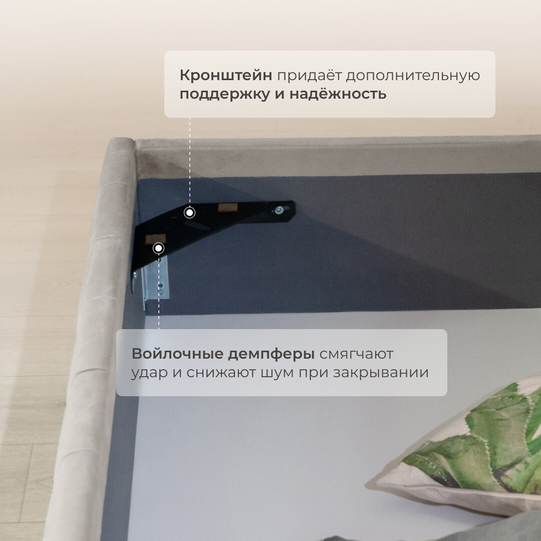 Двуспальная кровать с подъемным механизмом Оливия, с ортопедическим основанием, с мягким изголовьем, 160х200см, Bingo pebble интересное: