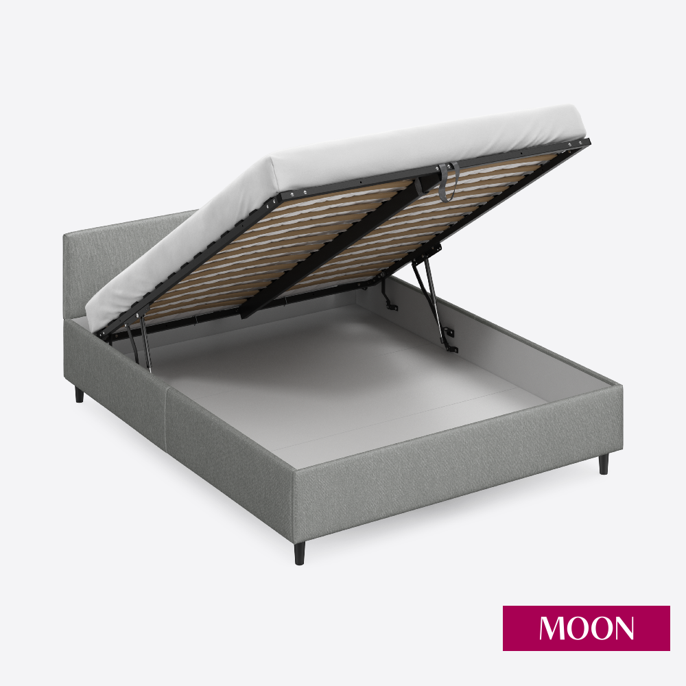 СохранитьКровать двуспальная с подъемным механизмом на ножках, MOON FAMILY 1250, размер 160х200 см, рогожка серая. Ортопедическое основание в комплекте интересное: