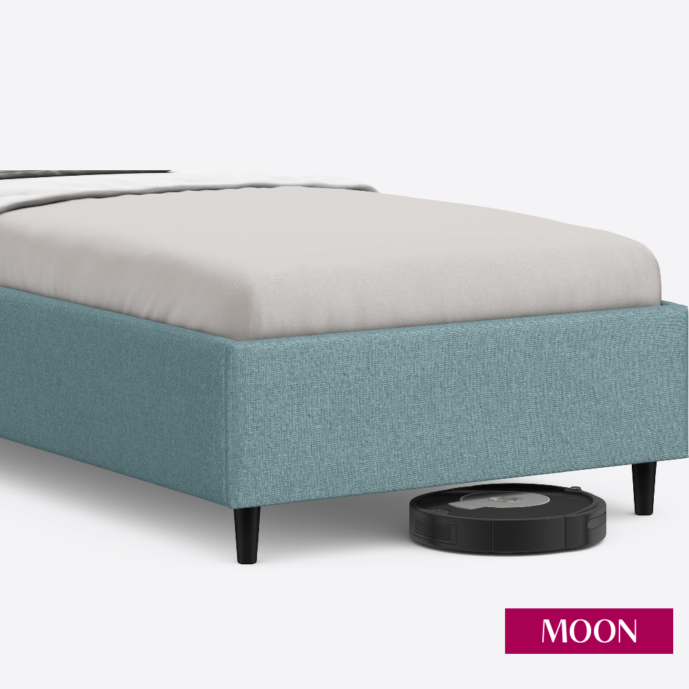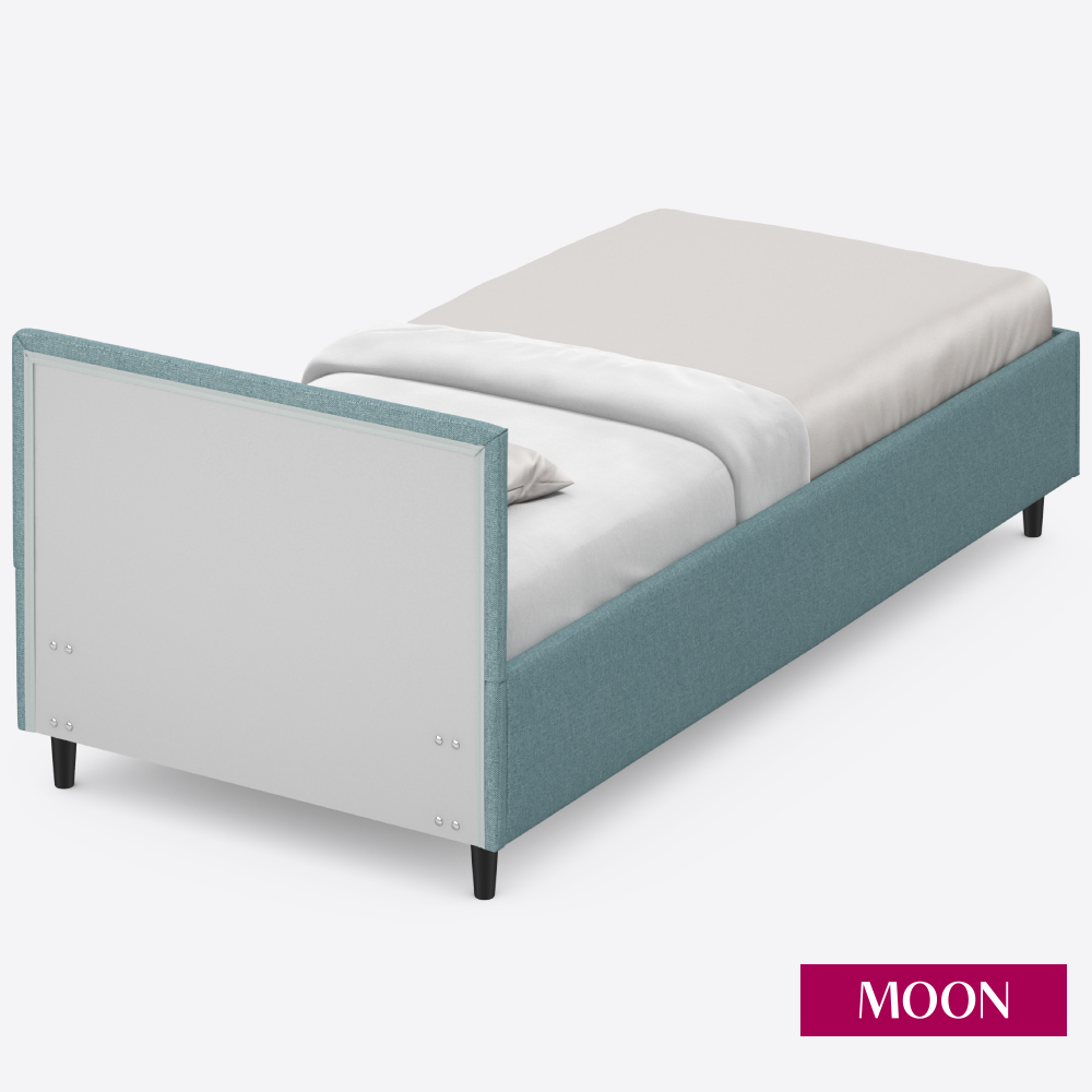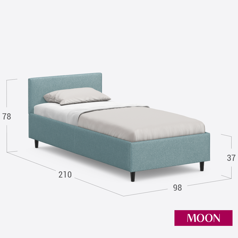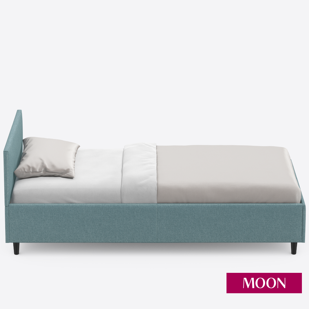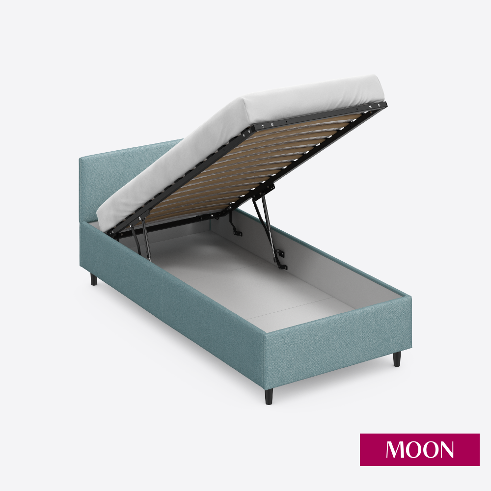 СохранитьКровать односпальная с подъемным механизмом на ножках, MOON FAMILY 1250, размер 90х200 см, рогожка бирюзовая. Ортопедическое основание в комплекте интересное: