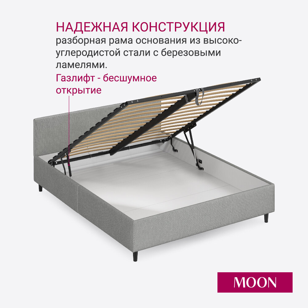 Кровать с матрасом 160х200 см двуспальная MOON FAMILY 1250, серая, с подъемным механизмом, основание входит в комплект