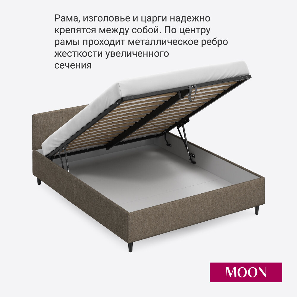 Кровать с матрасом 160х200 см двуспальная MOON FAMILY 1250, Коричневая, с подъемным механизмом, основание входит в комплект