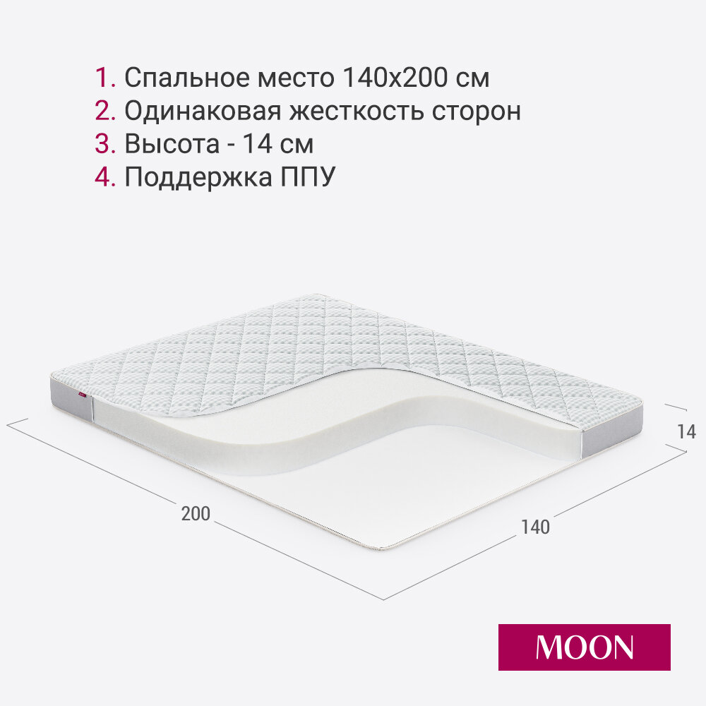 Кровать с матрасом 140х200 см двуспальная MOON FAMILY 1250, серая, с подъемным механизмом, основание входит в комплект