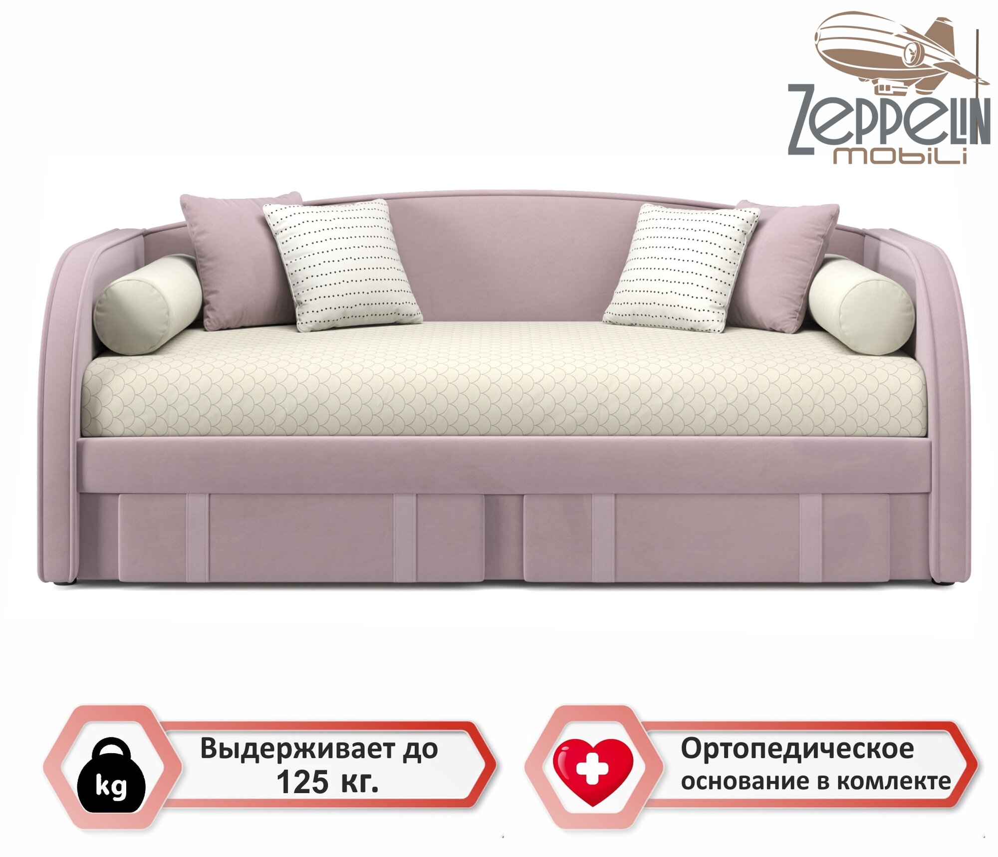 СохранитьКровать Elda 90х200 односпальная лиловая с ортопедическим основанием и ящиками для хранения Zeppelin Mobili, мягкие спинки из велюра интересное: