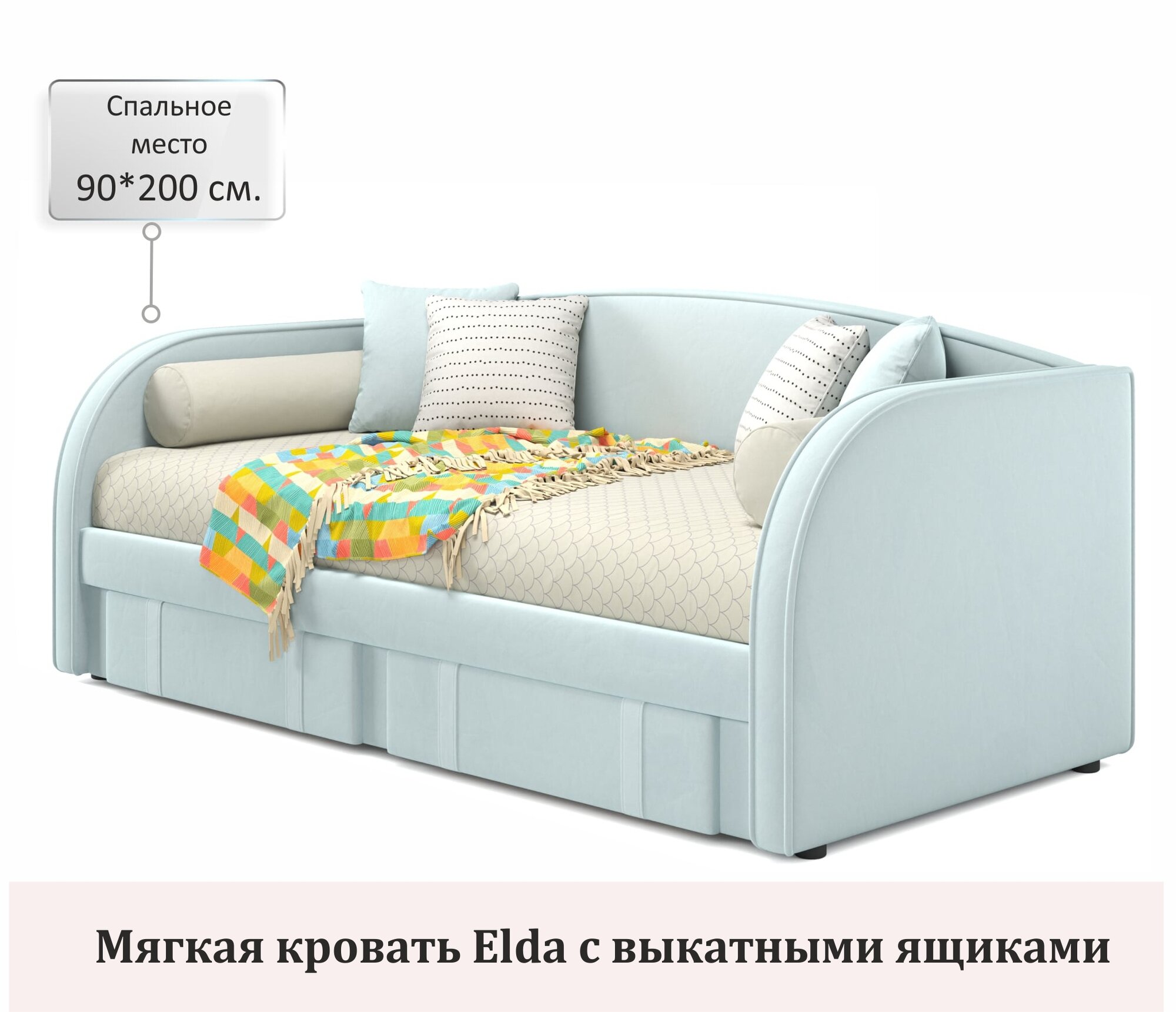 СохранитьКровать Elda 90х200 односпальная мята пастель с ортопедическим основанием и ящиками для хранения Zeppelin Mobili, мягкие спинки из велюра интересное: