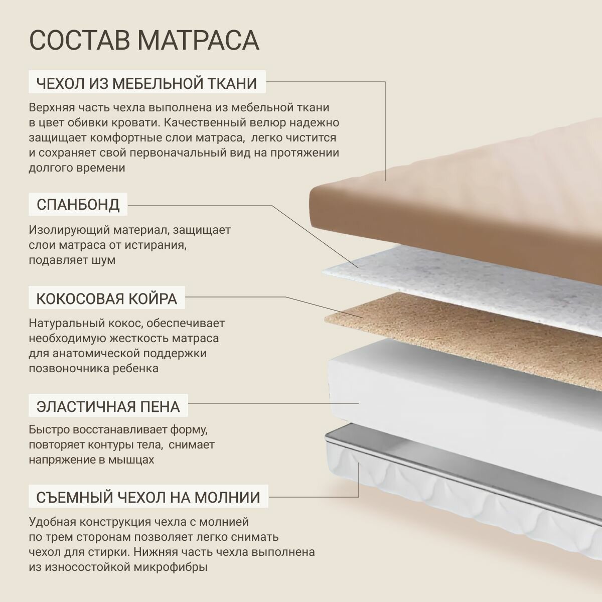 СохранитьДетский диван кровать Челси 90х200 см бежевый с матрасом, чехлом, выкатным ящиком и бортиком Кровать детская от 3х лет интересное: