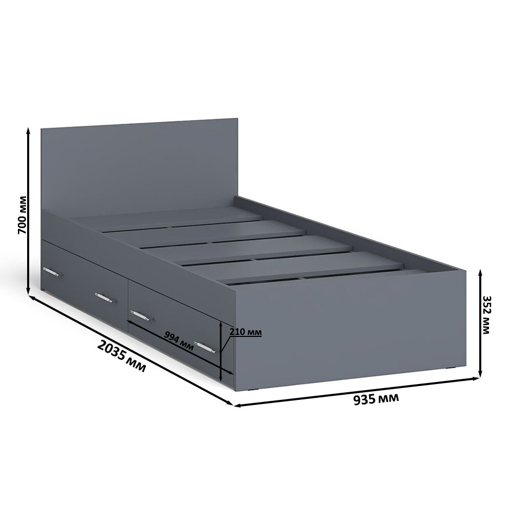 Купить Кровать с ящиками Мори 900 цвет графит, ШхГхВ 93,5х203,5х70 см, сп. м. 900х2000 мм, без матраса, основание есть