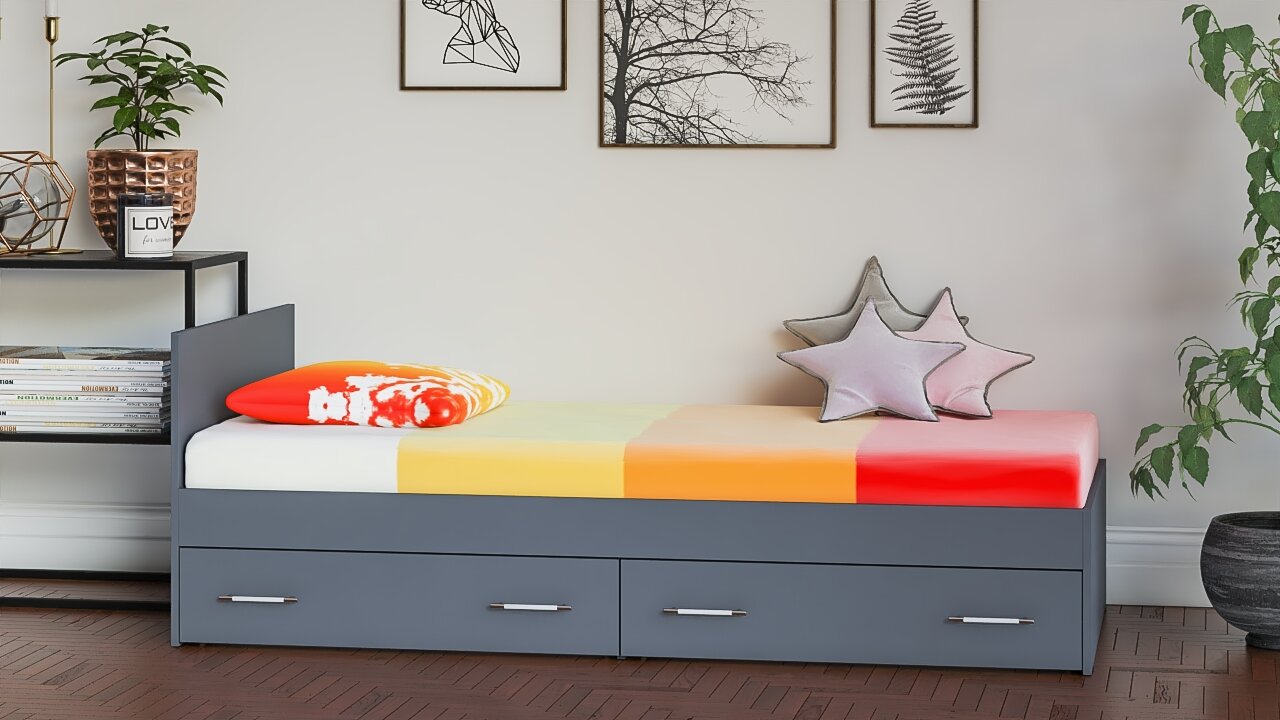 Кровать с ящиками Мори 900 цвет графит/белый, ШхГхВ 93,5х203,5х70 см, сп. м. 900х2000 мм, без матраса, основание есть