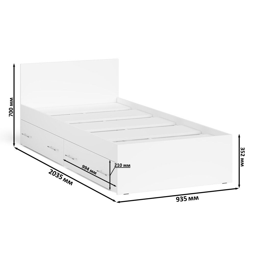 Купить Кровать с ящиками Мори 900 цвет белый, ШхГхВ 93,5х203,5х70 см, сп. м. 900х2000 мм, без матраса, основание есть